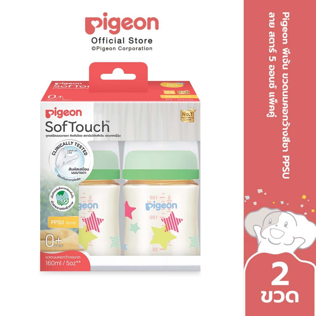 Pigeon พีเจ้น ขวดนมคอกว้างสีชา PPSU ลาย STAR 5ออนซ์ และ 8ออนซ์ แพ็คคู่