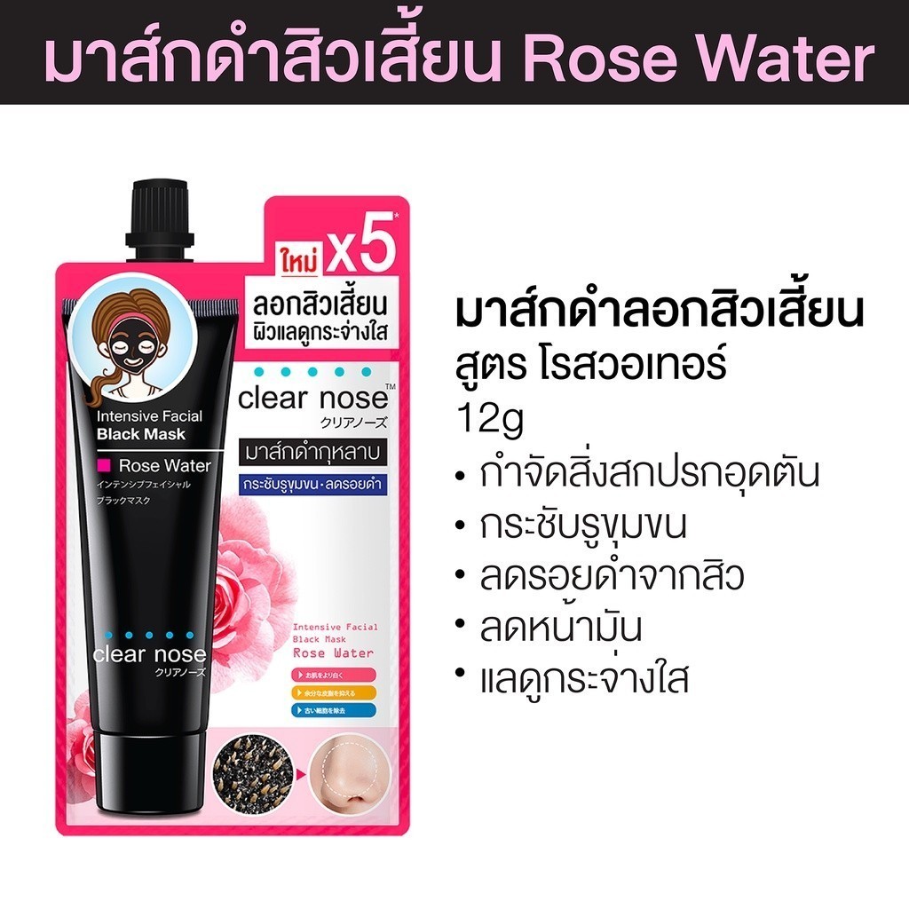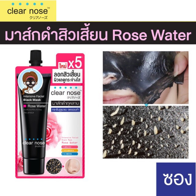 [1ซอง] มาส์กดำ ลอกสิวเสี้ยน เคลียร์โนส น้ำกุหลาบบริสุทธิ์ Clear Nose Black Mask