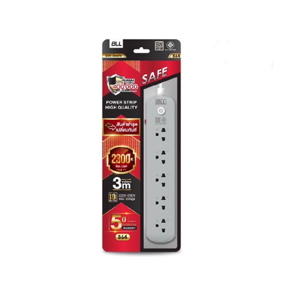 บีแอลแอล ปลั๊กไฟ 1 สวิตซ์ 5 ช่องเสียบ สายยาว 3 เมตร รุ่น B64 BLL POWER STRIP WITH 1 SWITCH AND 5 OUTLETS 3-METER