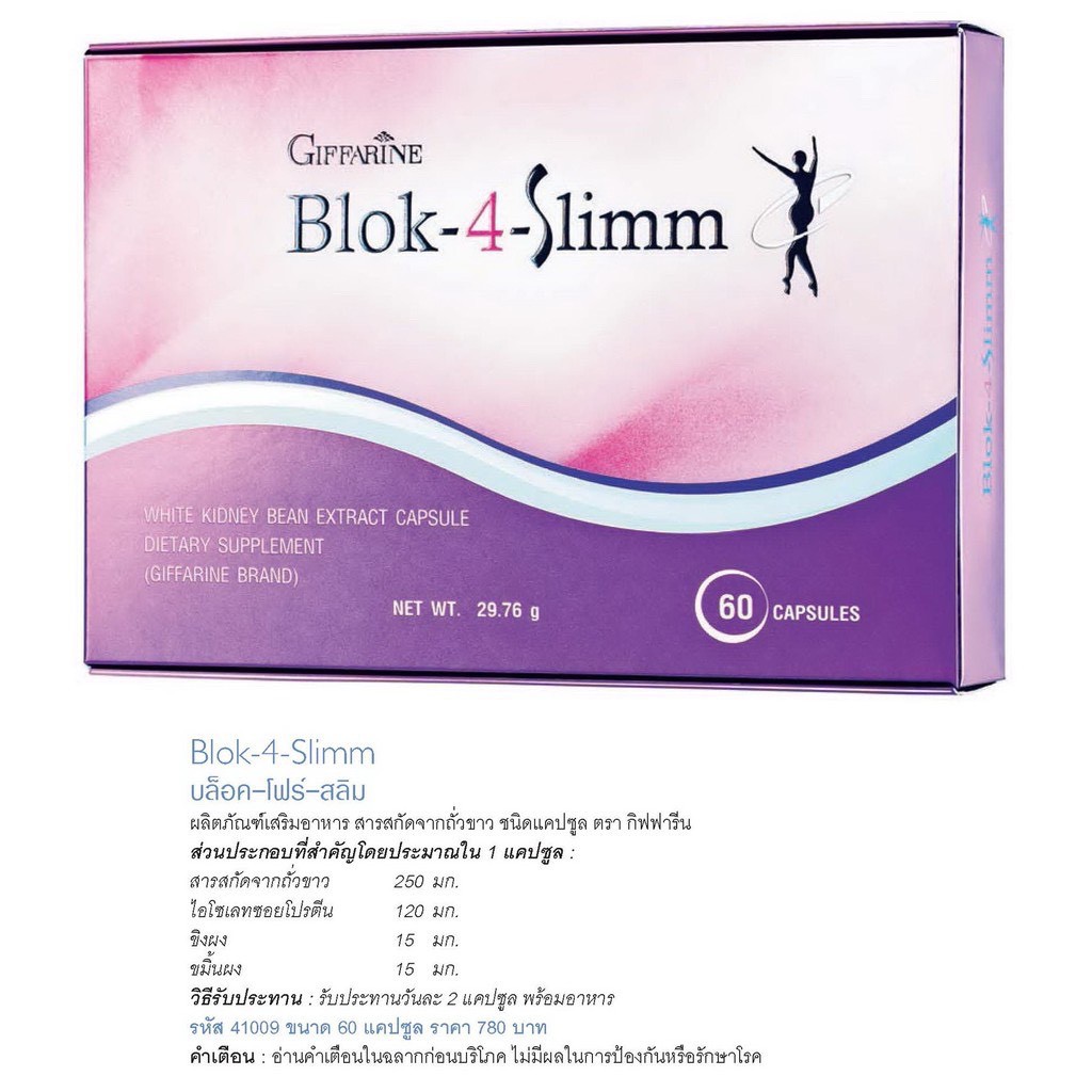 [ ส่งฟรี ] BLOK-4-SLIMM GIFFARINE บล็อค-โฟร์- สลิม กิฟฟารีน | ลดน้ำหนัก ดักจับแป้งและน้ำตาล
