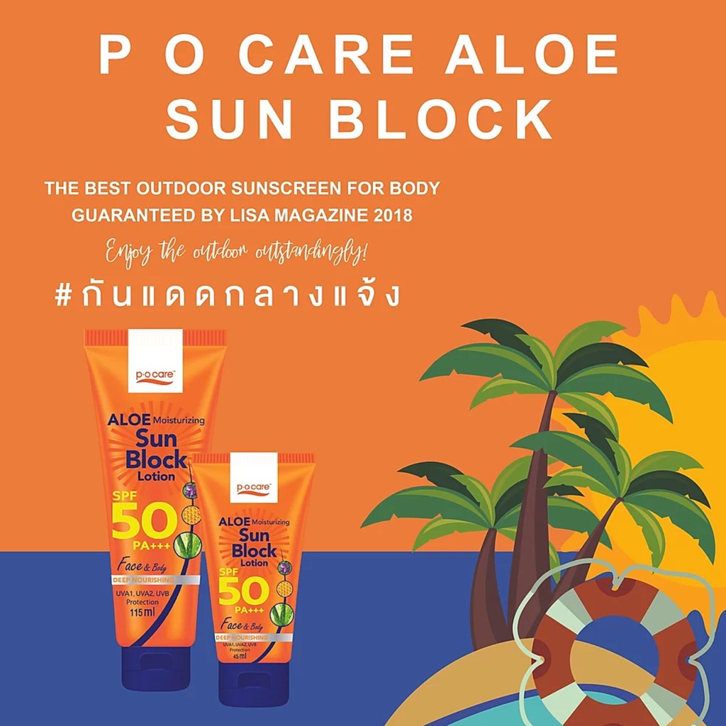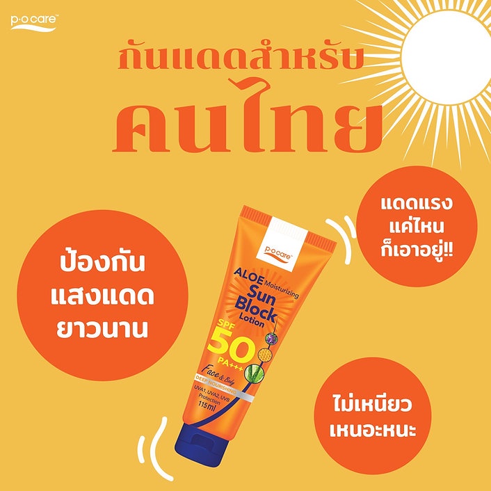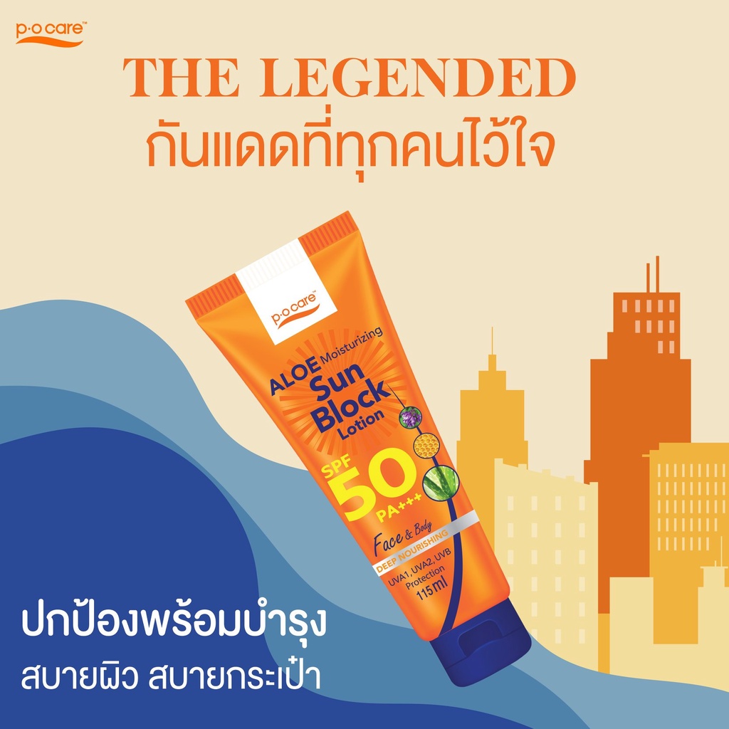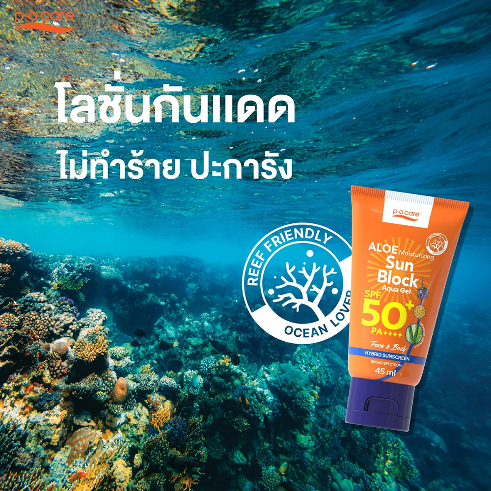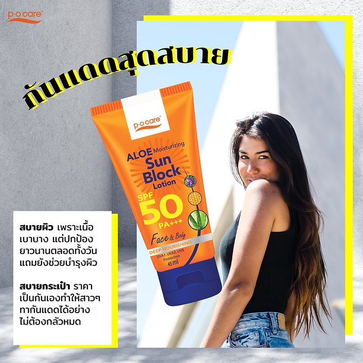 [1 แถม 1] PO Care พี โอ แคร์ อโล มอยส์เจอร์ไรซิ่ง ซัน บล็อก โลชั่น เอสพีเอฟ50 พีเอ+++ 45/115 มล.