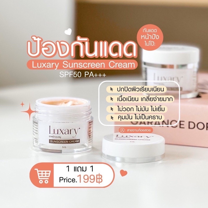 [1แถม1][ของแท้ ส่งฟรี‼️]🌞กันแดดพี่หนิง กันแดดลักชัวรี่ กันแดดลักชูรี่ Luxary sunscreenSPF50 กันแดดทาหน้า กันน้ำกันเหงื่อ