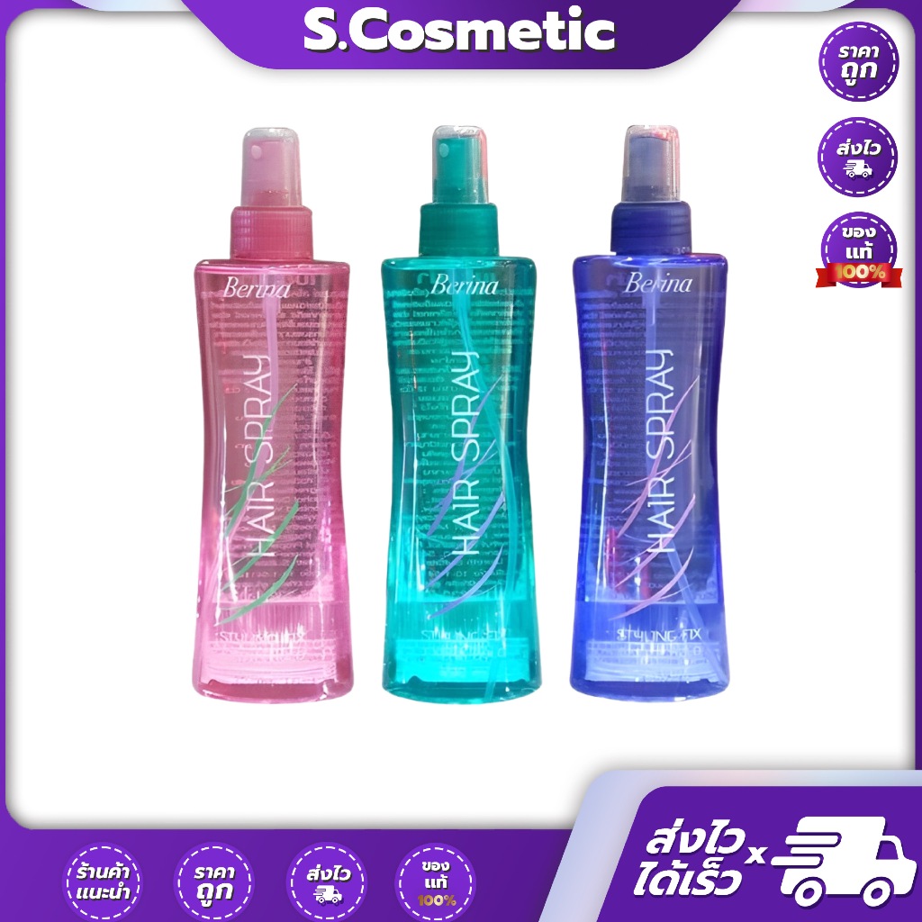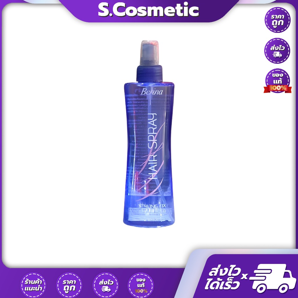 Berina เบอริน่า แฮร์สเปรย์ สไตลิ่งฟิกซ์ สเปรย์ฉีดผม จัดแต่งทรงผม ( แข็งพิเศษ ) 230 ml.
