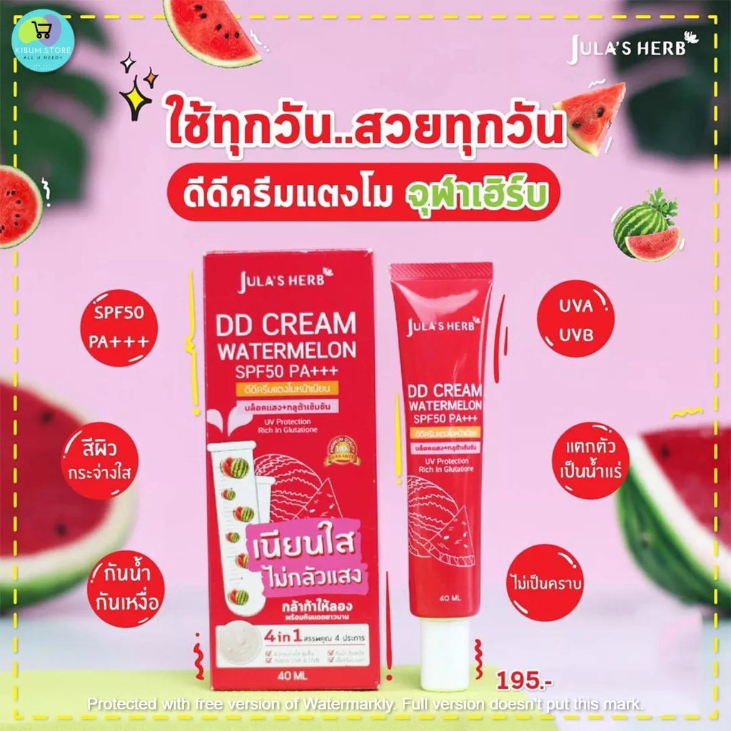 ดีดีแตงโมแบบหลอด DD CREAM WATERMELON SPF50 PA+++ (หลอด) 40 Ml. ✅