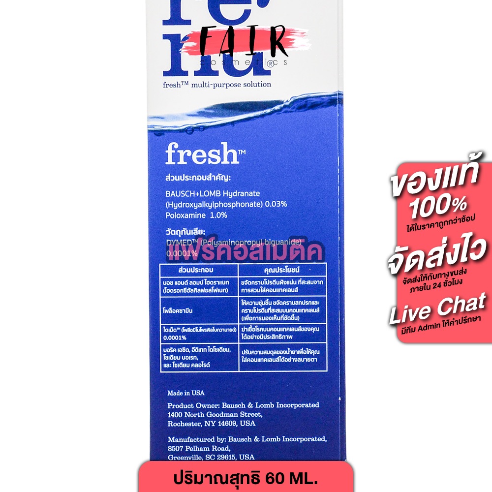 Bausch+Lomb Renu Fresh รีนิว เฟรช บอช แอนด์ ลอมบ์ [สินค้ามีให้เลือก 3 ขนาด] น้ำยาล้างคอนแทคเลนส์