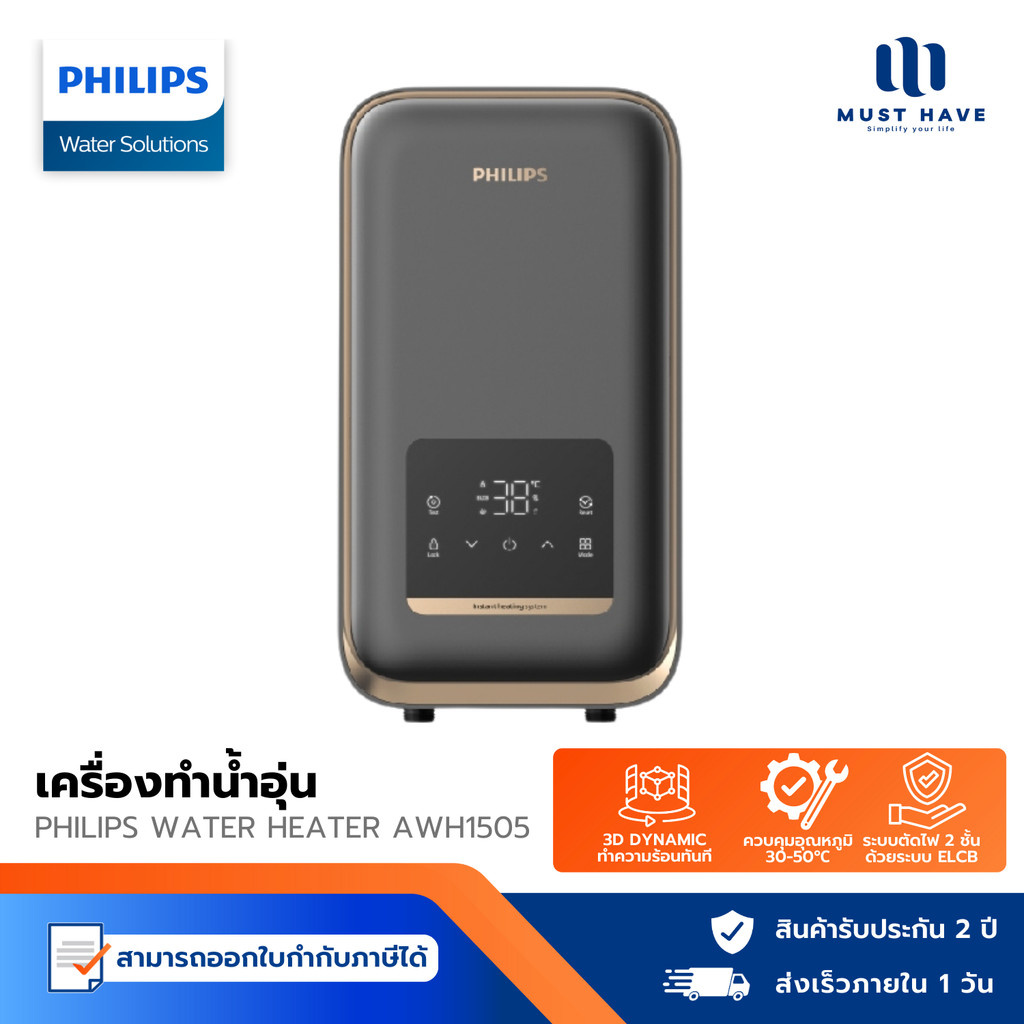 Philips Water Heater AWH1501/AWH1504/AWH1505 เครื่องทำน้ำอุ่น Safe Shield 9 ระดับ ประหยัดไฟ รับประกัน 2 ปี