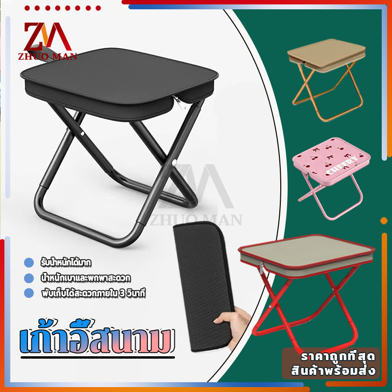 เก้าอี้สนาม เก้าอี้ตกปลา เก้าอี้พับได้พกพาสะดวก เก้าอี้ปิคนิค เก็บใส่ถุง แข็งแรง ทนทาน เหมาะสำหรับการตั้งแคมป์ ไปเที่ยว