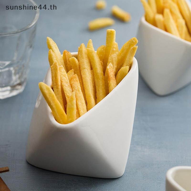 Foursun สีขาว Porcelain French Fry ผู้ถือเซรามิค Fries Scoop ถ้วยกล่องสําหรับงานปาร์ตี้และ Takeout ขนมขบเคี้ยว Dipping ชามโรงแรมบนโต๊ะอาหาร TH