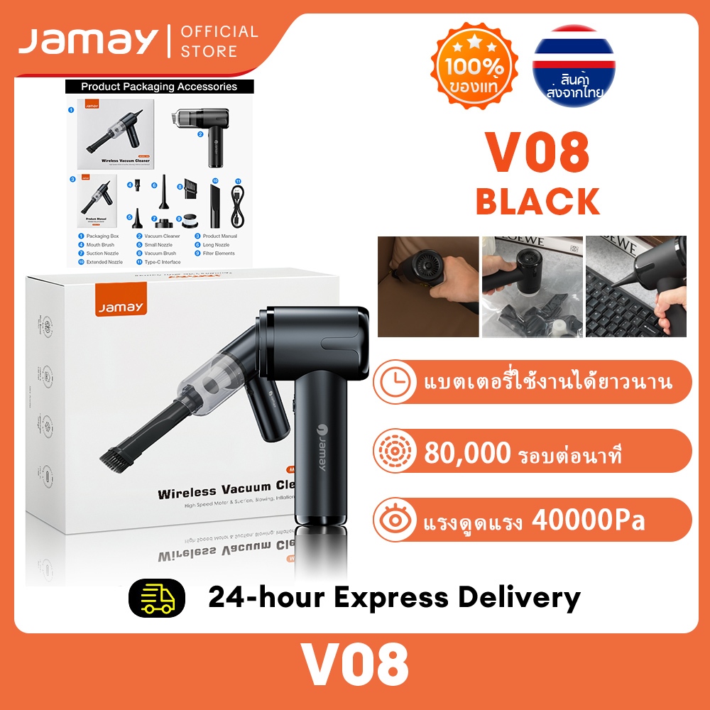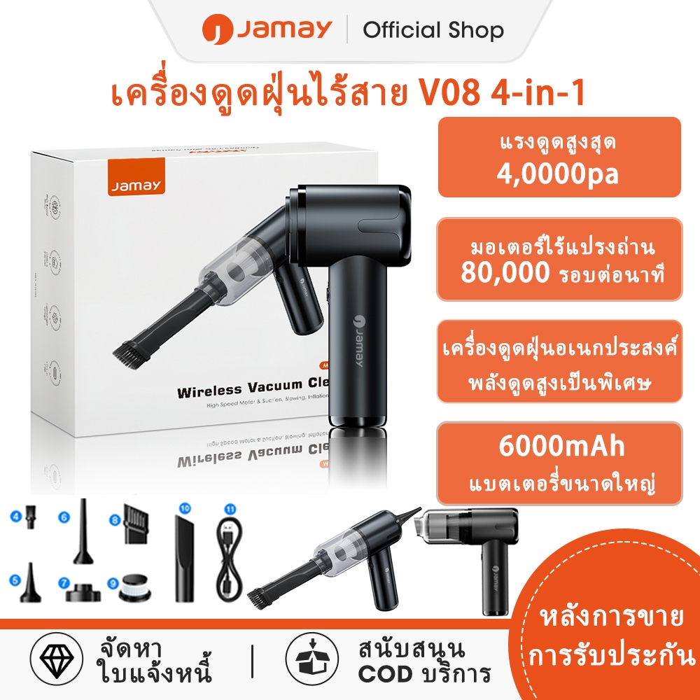 JAMAY เครื่องดูดฝุ่นในรถยนต์ เครื่องดูดฝุ่นพกพา ดูด เป่า เป่าลม ออลอินวัน ใช้ได้ทั้งที่บ้านและในรถ
