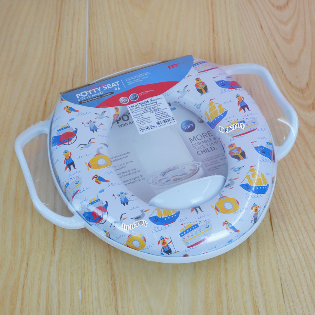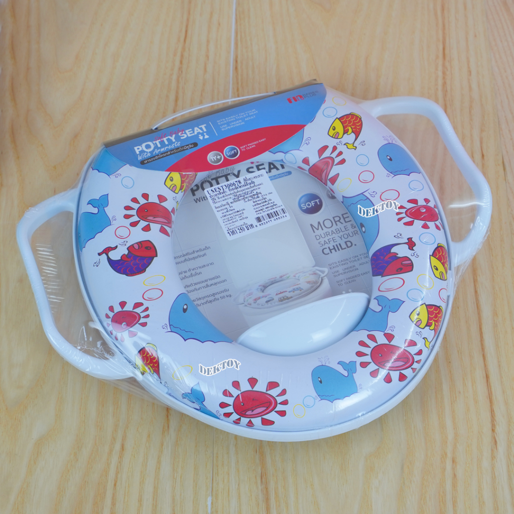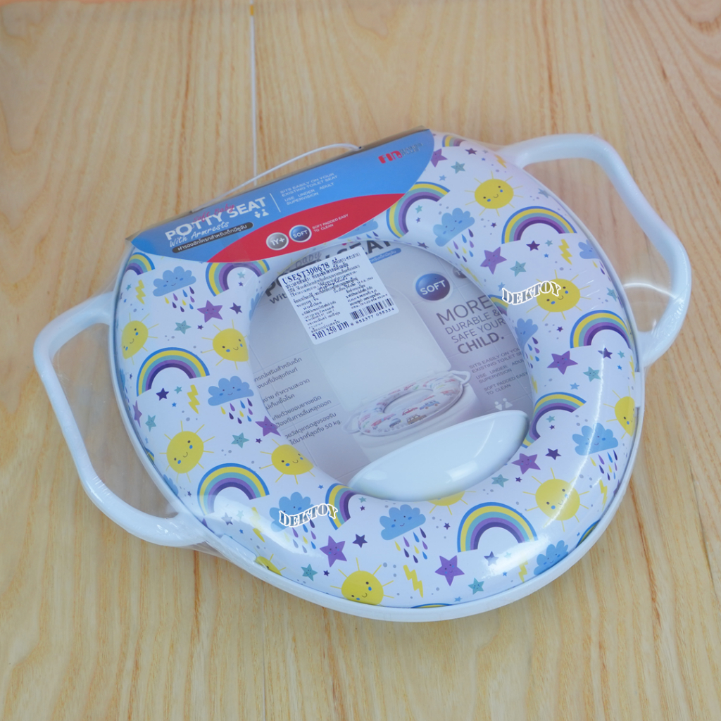 Fin ฝารองชักโครกเด็ก แบบมีด้าม 300678A-F วัสดุ PP เบาะนิ่ม ใช้งานได้กับชักโครกรุ่นมาตรฐานทุกรุ่น