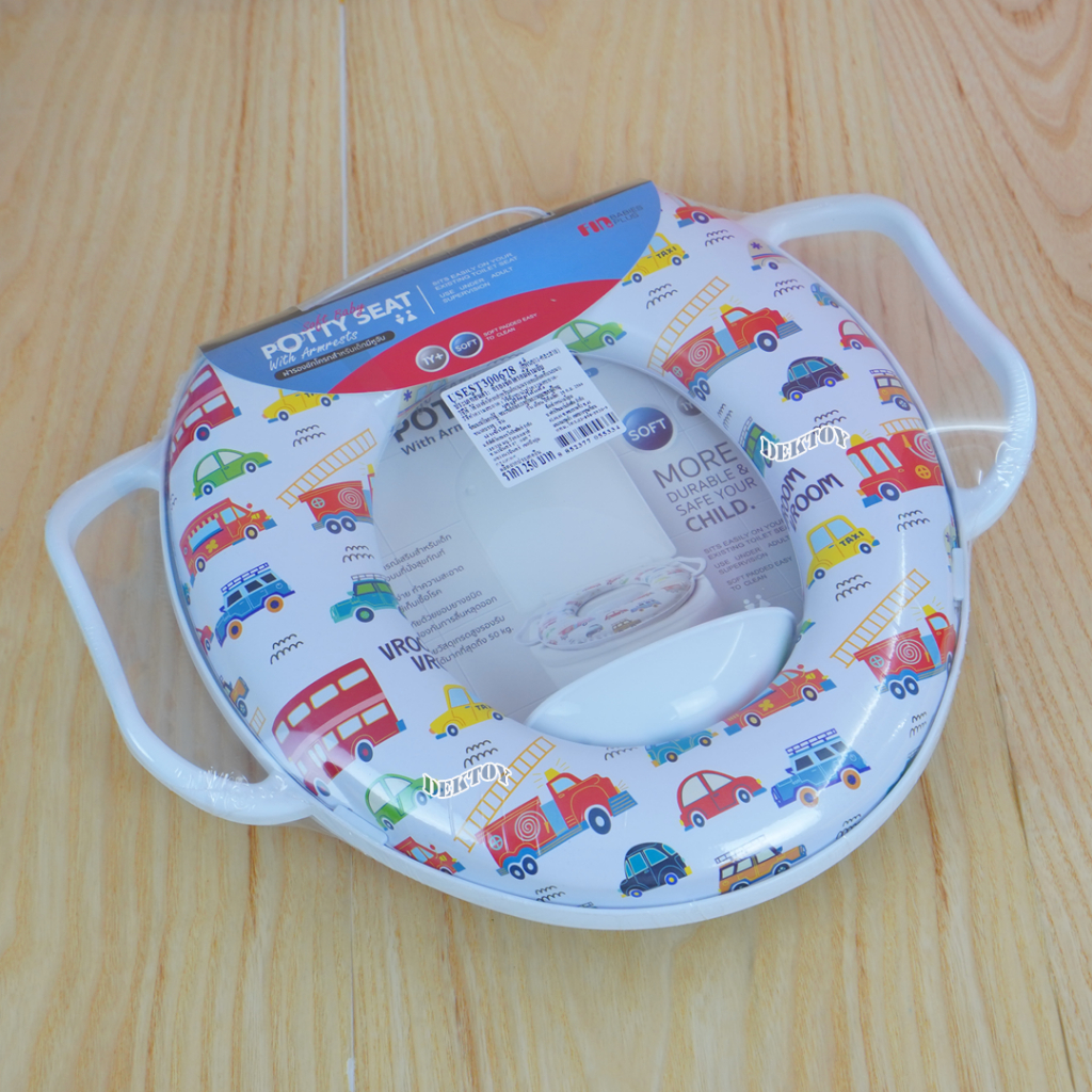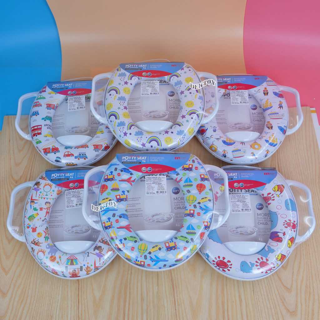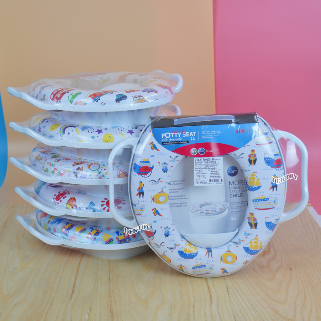 Fin ฝารองชักโครกเด็ก แบบมีด้าม 300678A-F วัสดุ PP เบาะนิ่ม ใช้งานได้กับชักโครกรุ่นมาตรฐานทุกรุ่น