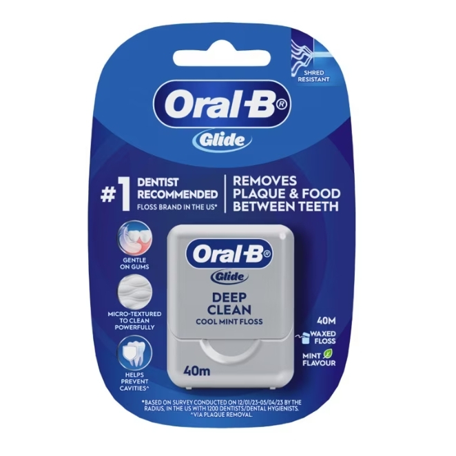 Oral B Oral-B Glide Deep Clean Floss Cool Mint Waxed ออรัลบี ไหมขัดฟัน กลิ่นมิ้นท์ ยาว 40 เมตร 15539