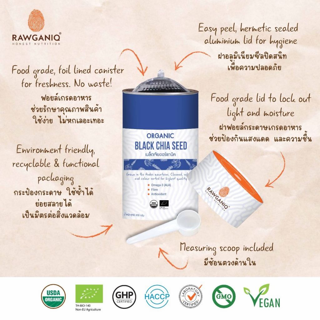 Rawganiq เมล็ดเจียออร์แกนิค Organic Black Chia Seed (300g)