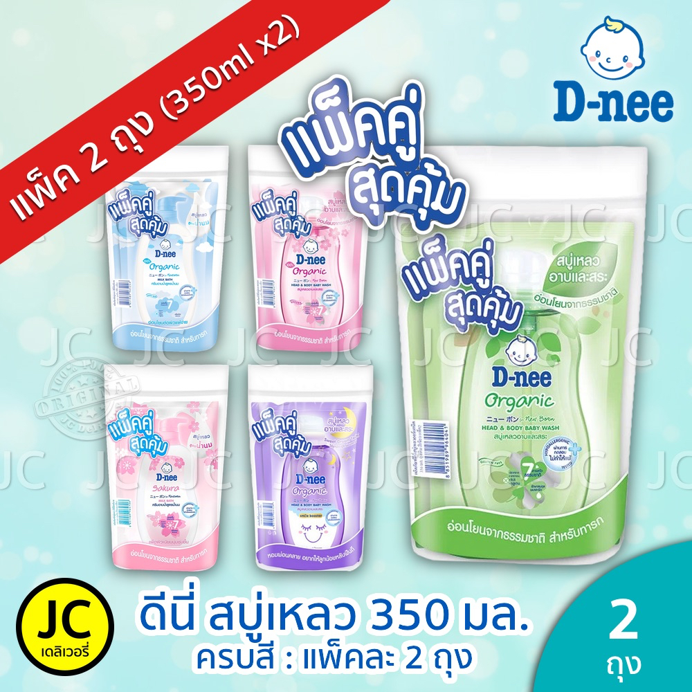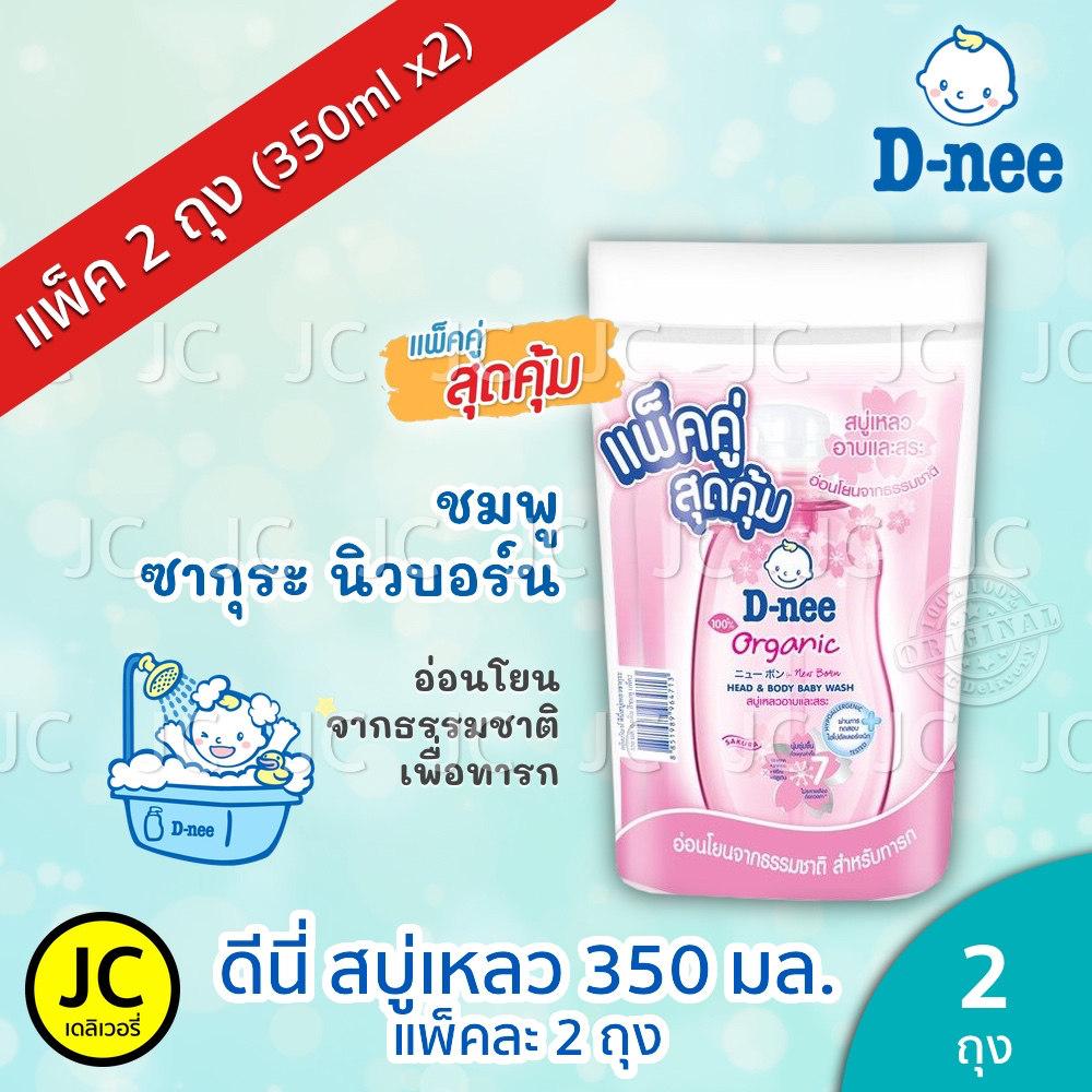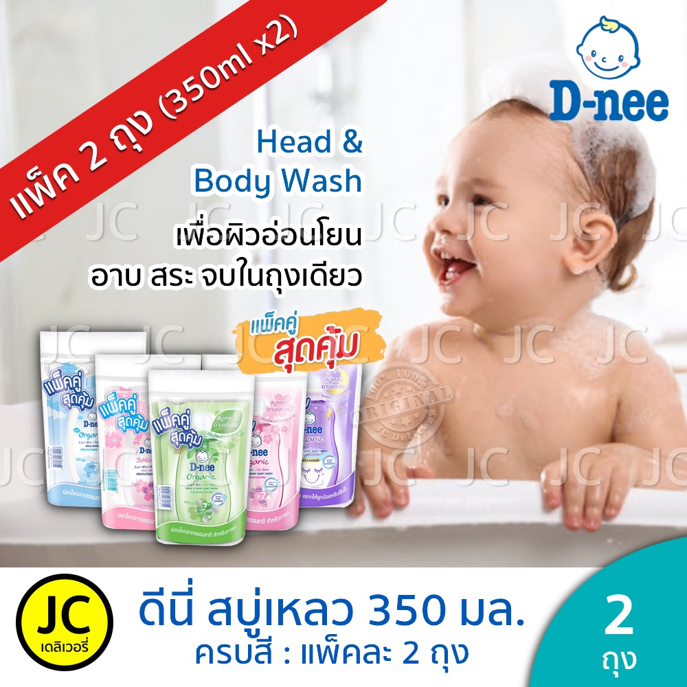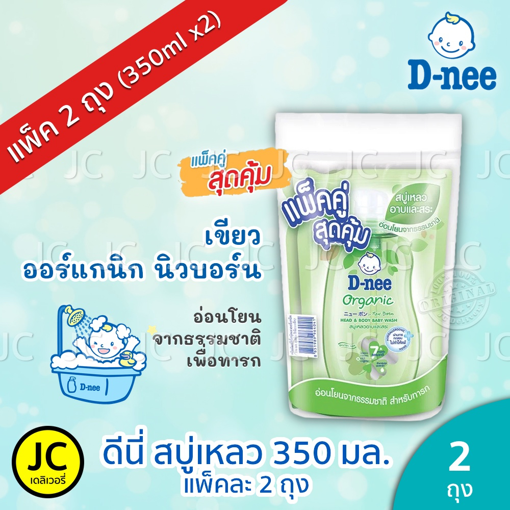 (แพ็คคู่) D-nee ดีนี่ สบู่เหลว 350 มล. x 2ถุง อาบ+สระ ครีมอาบน้ำ แบบถุงเติม สำหรับ เด็กแรกเกิด Dnee Head & Body Organic