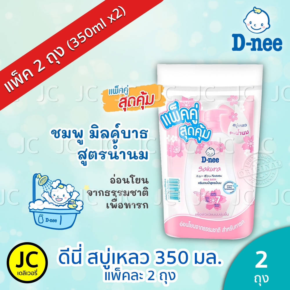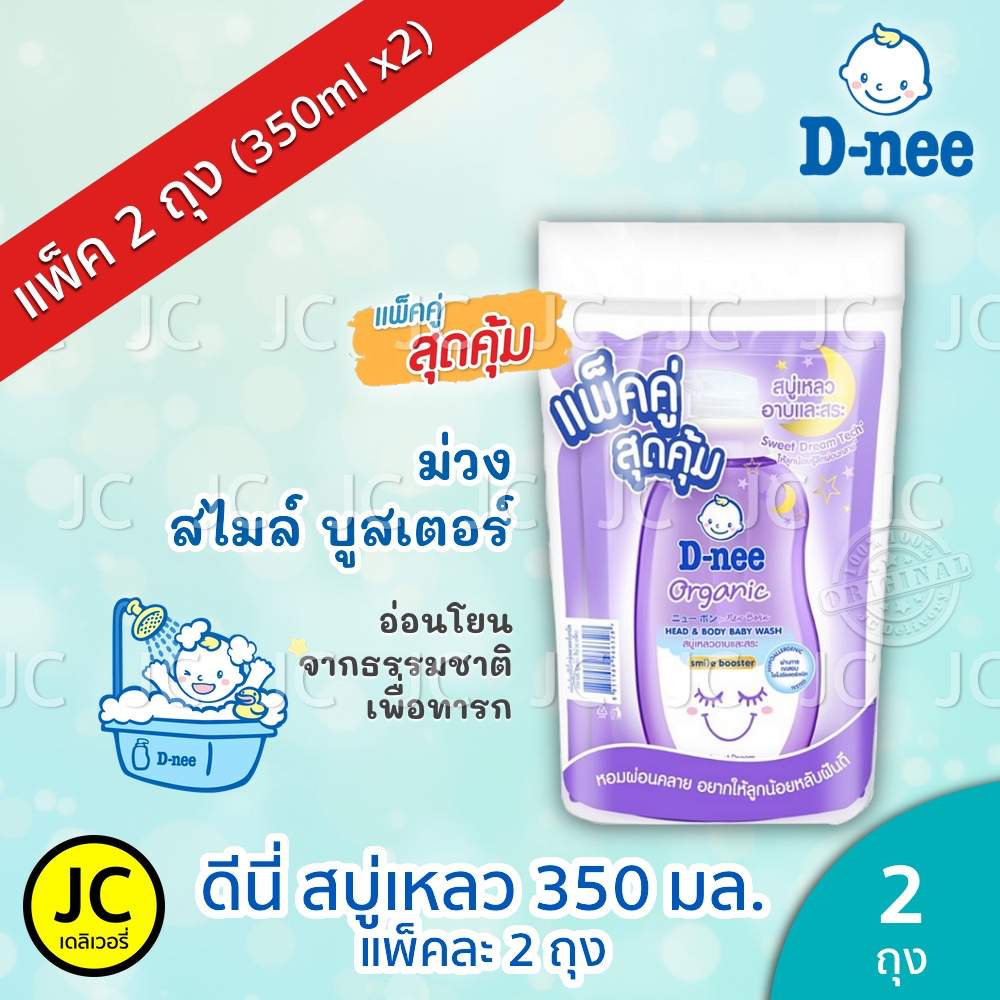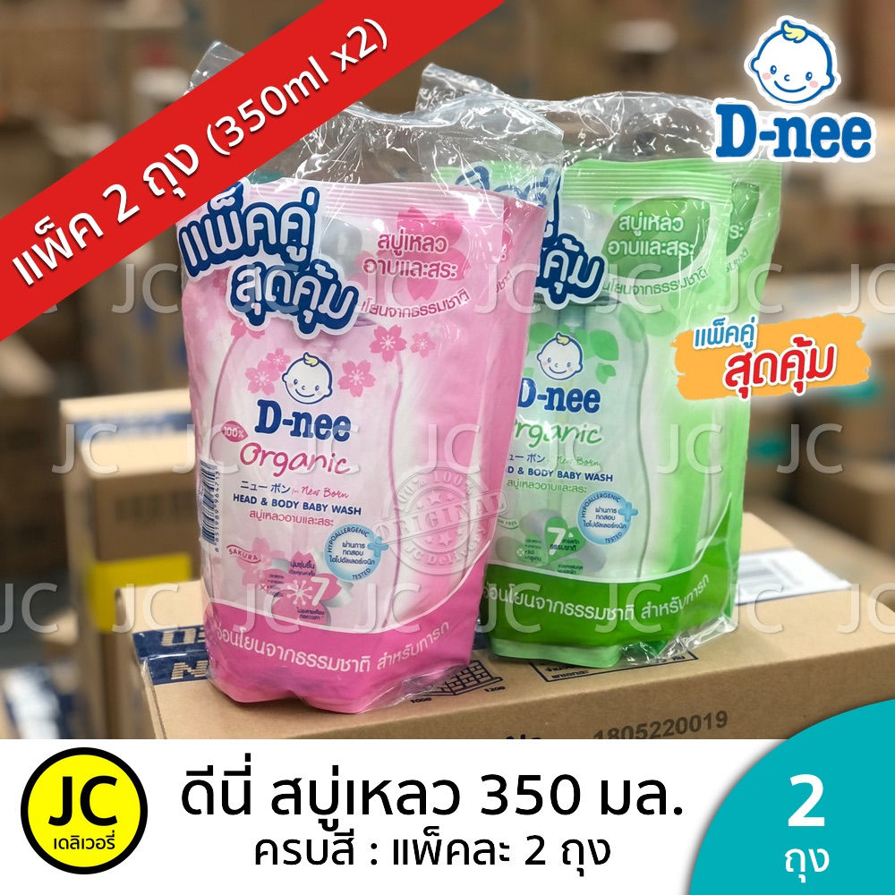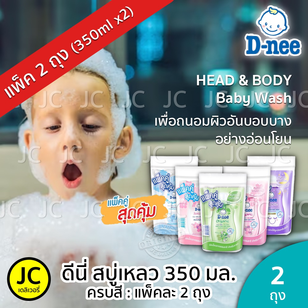 (แพ็คคู่) D-nee ดีนี่ สบู่เหลว 350 มล. x 2ถุง อาบ+สระ ครีมอาบน้ำ แบบถุงเติม สำหรับ เด็กแรกเกิด Dnee Head & Body Organic