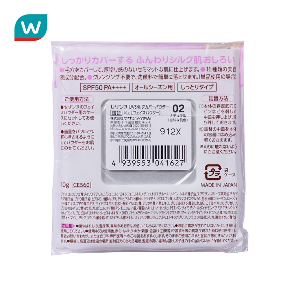 Cezanne เซซาน ยูวี ซิลค์ โคเวอร์ พาวเดอร์ SPF50 PA+++ รีฟิล 10ก #02 เนเชอรัล