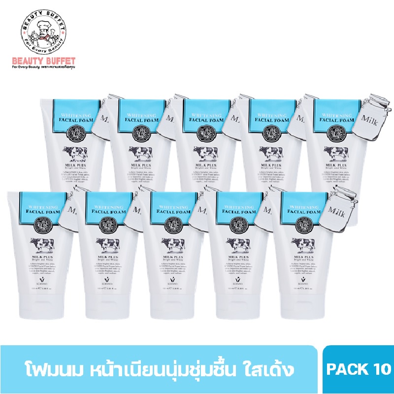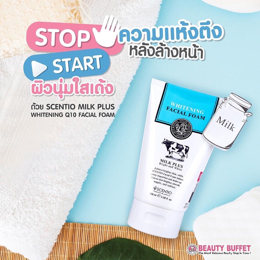 [แพ็ค 10หลอด ราคาพิเศษ!] BEAUTY BUFFET SCENTIO Milk Plus Whitening Q10 Facial Foam เซนทิโอมิลล์พลัสไวท์เทนนิ่ง เฟเชียลโฟมคิวเทน(100ml)