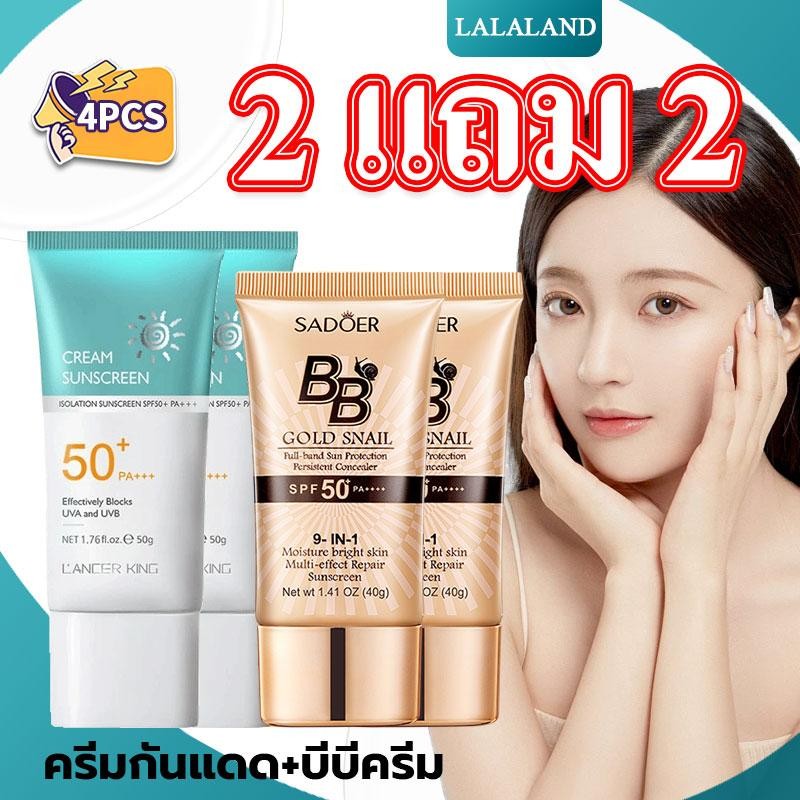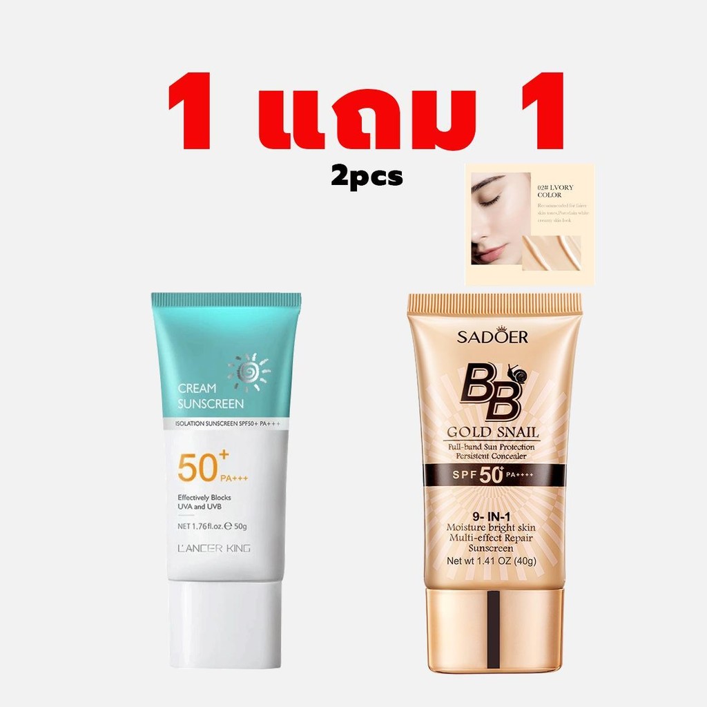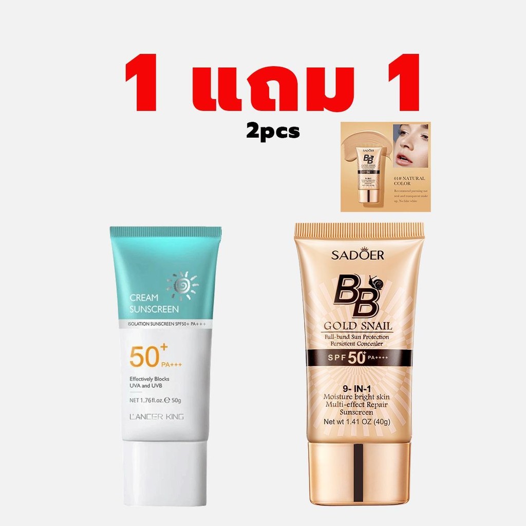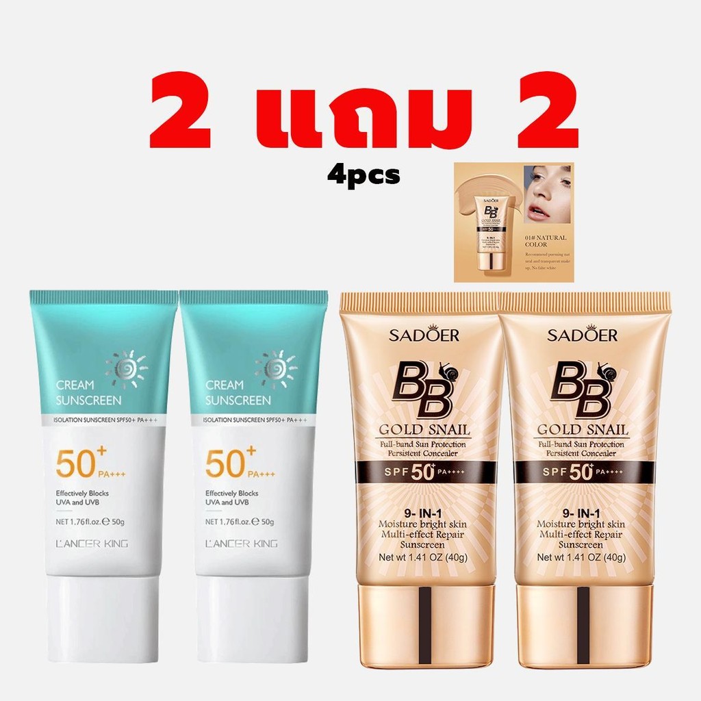 2 แถม 2 LANCER KING - ครีมกันแดด SPF 50+PA+++ น้ำหนักเบา กันเหงื่อ ไม่เหนียวเหนอะหนะ กันแดด UV ครีม 50g +BB cream 50g