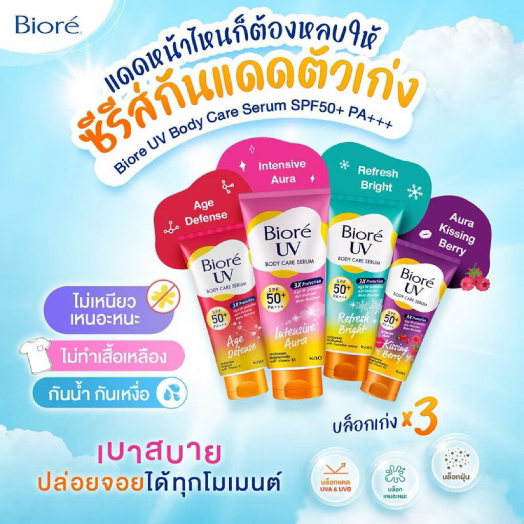 ถูกสุด! 99฿ เติมของหลอดใหญ่150ml ของแท้ Biore กันแดด UV SPF50+/PA+++บิโอเรยูวีครีมกันแดดทาตัวทาหน้า
