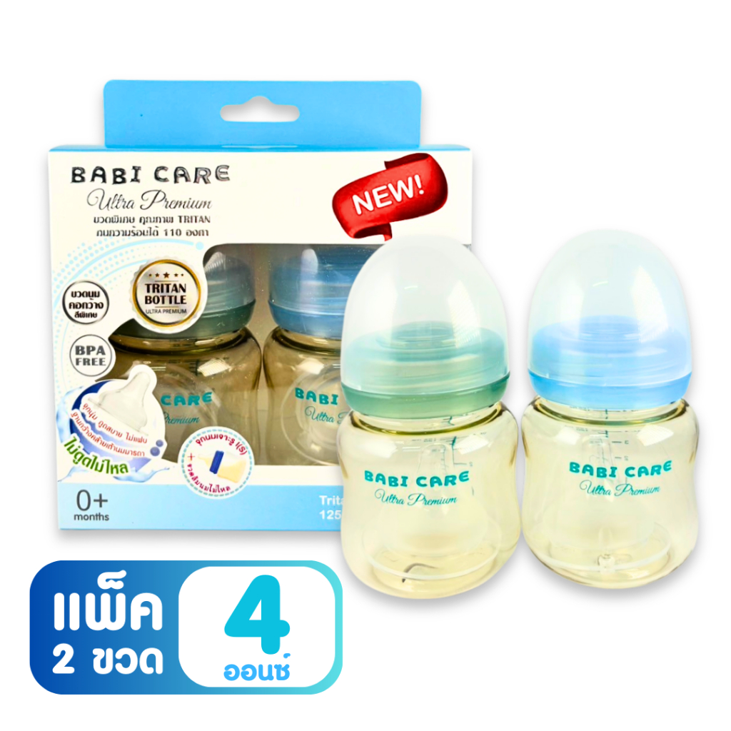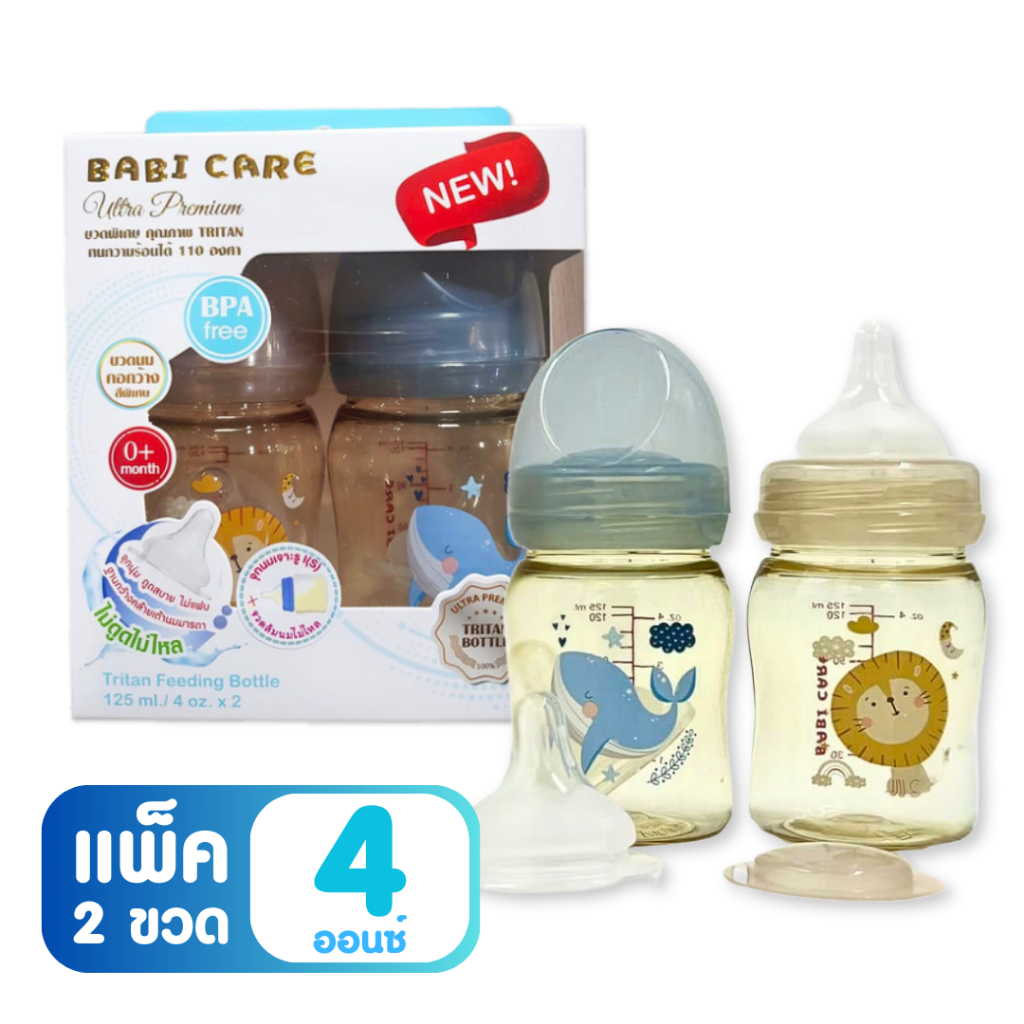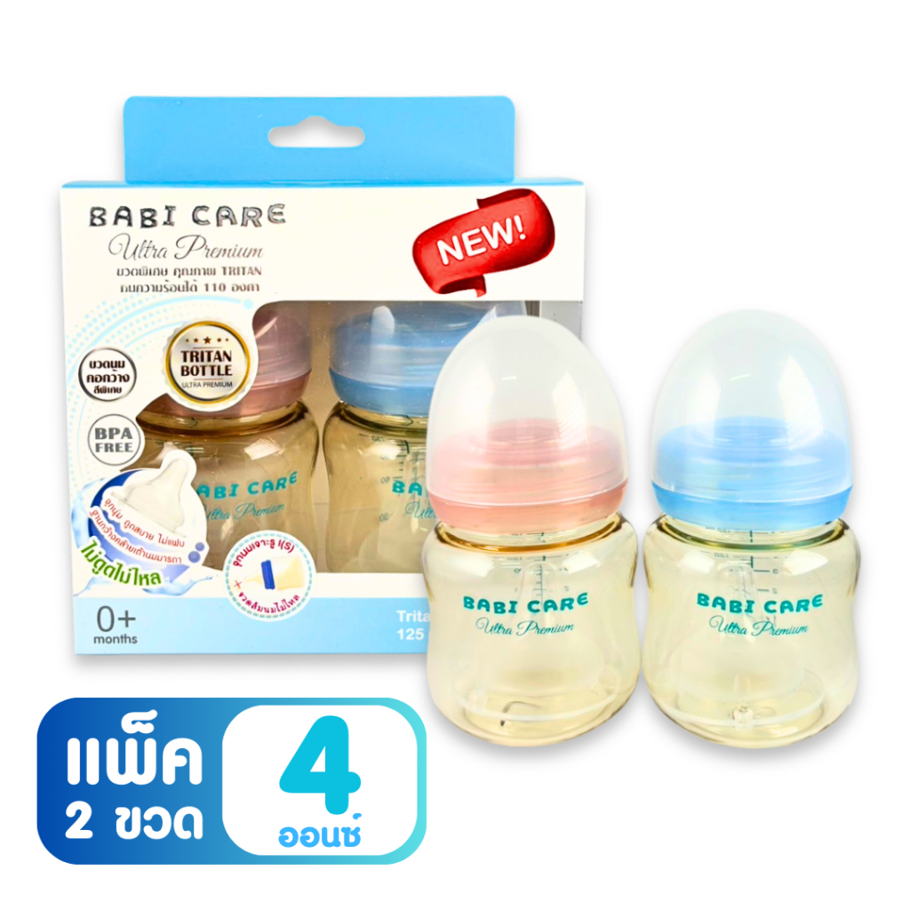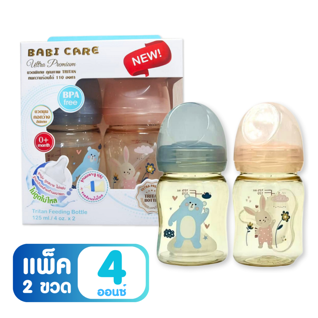 [ไม่ดูดไม่ไหล] Babi Care ขวดนมคอกว้าง เบบ ี้แคร์ ขวดนมไตรตัน TRITAN (ขนาด 4/8 ออนซ์) ขวดนมเด็ก พร้อมจุกนมซิลิโคนคอกว้าง