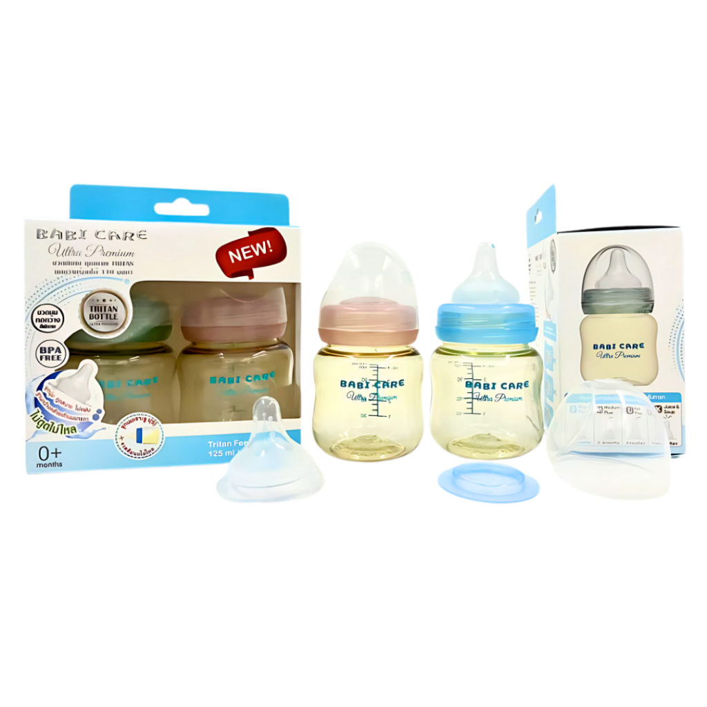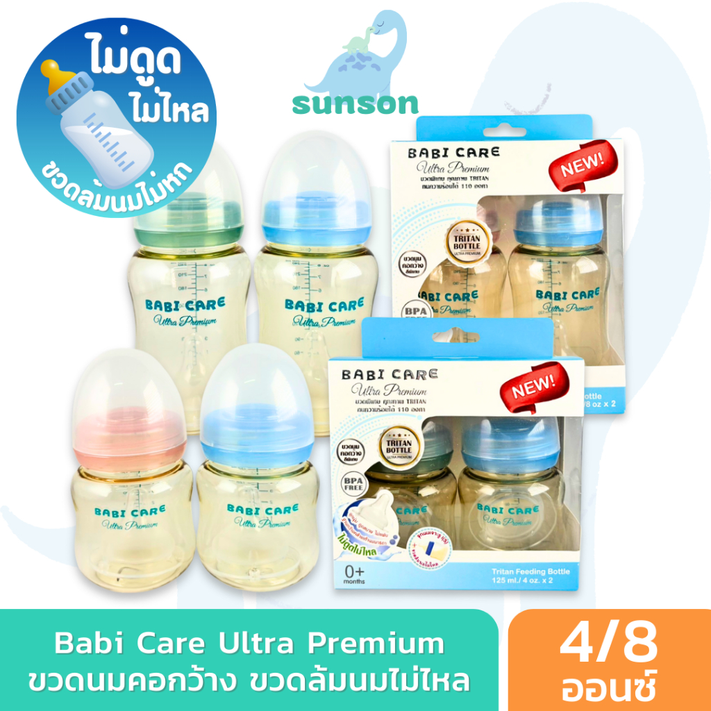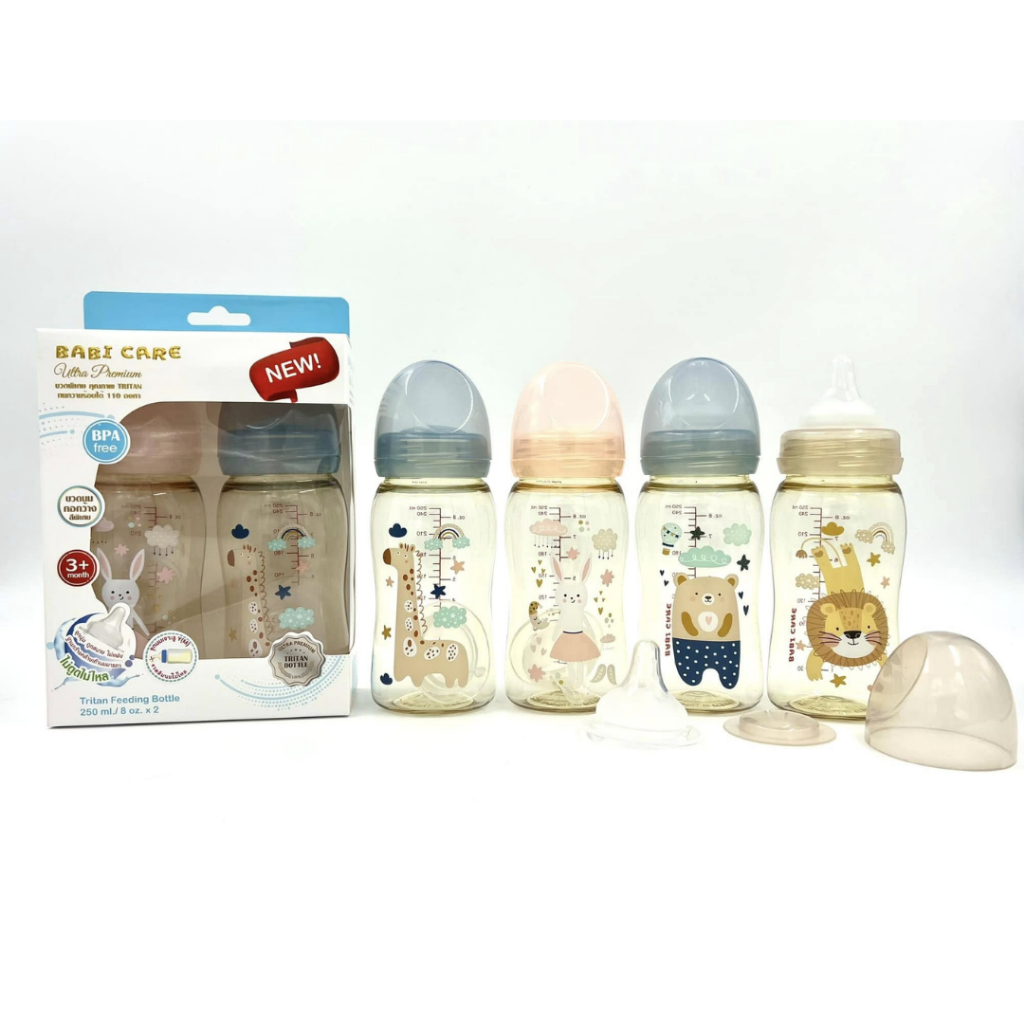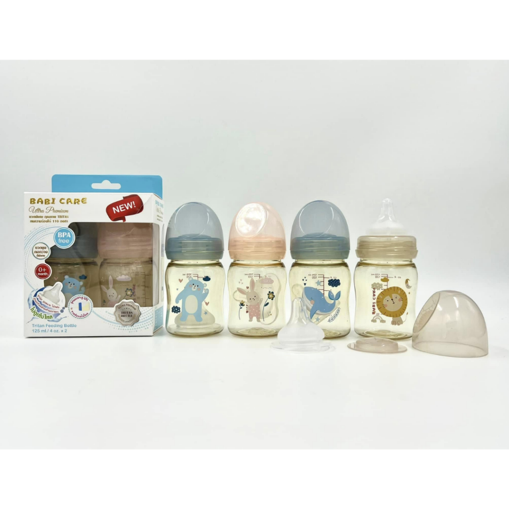 [ไม่ดูดไม่ไหล] Babi Care ขวดนมคอกว้าง เบบ ี้แคร์ ขวดนมไตรตัน TRITAN (ขนาด 4/8 ออนซ์) ขวดนมเด็ก พร้อมจุกนมซิลิโคนคอกว้าง