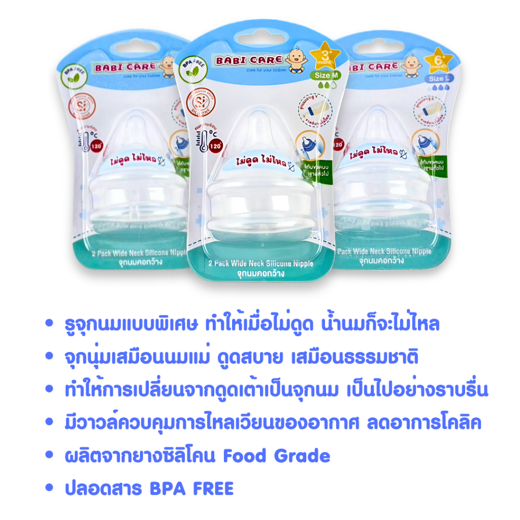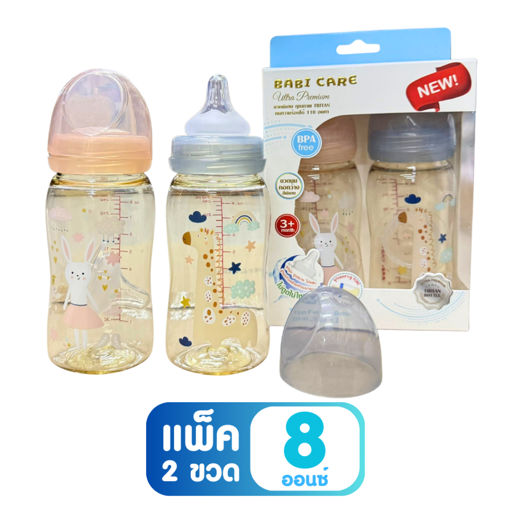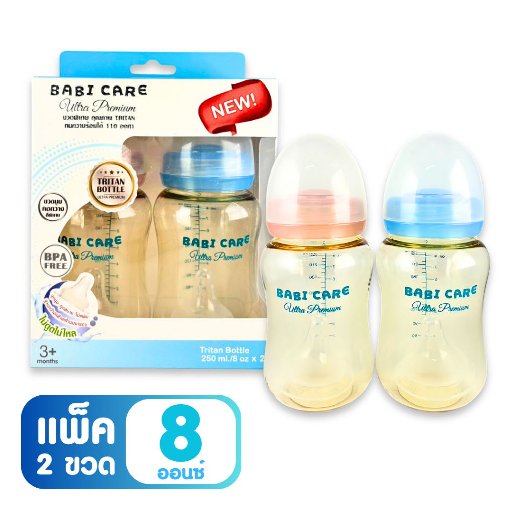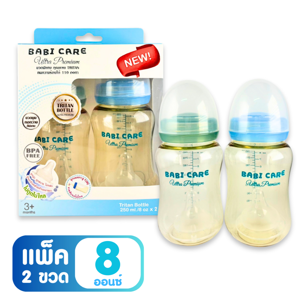 [ไม่ดูดไม่ไหล] Babi Care ขวดนมคอกว้าง เบบ ี้แคร์ ขวดนมไตรตัน TRITAN (ขนาด 4/8 ออนซ์) ขวดนมเด็ก พร้อมจุกนมซิลิโคนคอกว้าง