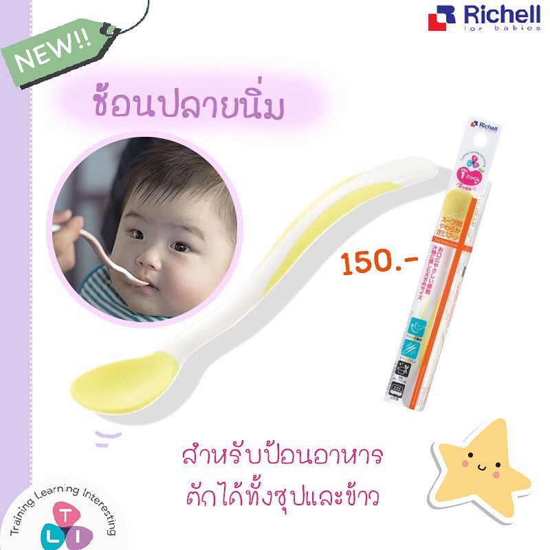 Richell ช้อนปลายนิ่ม-นิ่ม ช้อนซิลิโคน (สีครีม) อุปกรณ์ทานอาหาร ช้อนป้อนอาหารสำหรับเด็ก ช้อนกินข้าวเด็ก