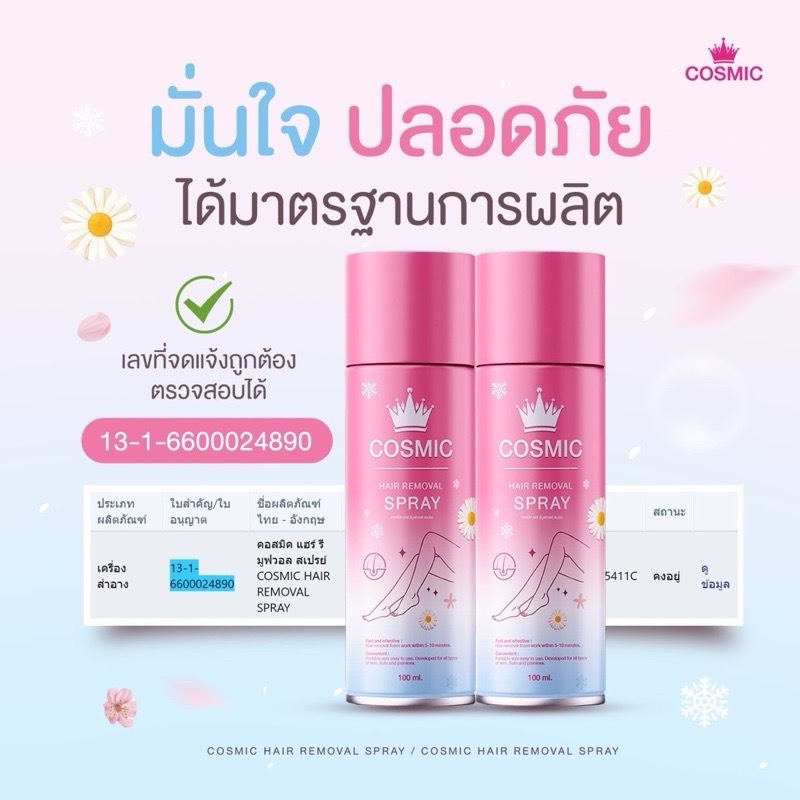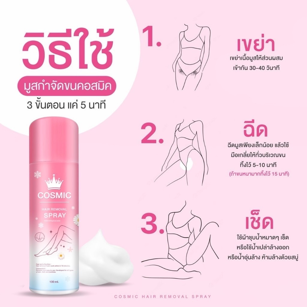 ส่งฟรี ✅ Cosmic คอสมิค [3 ขวด] มูสกำจัดขน ขนรักแร้ ขนน้องสาว ขนาด100 ml