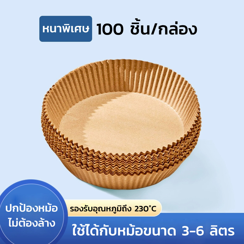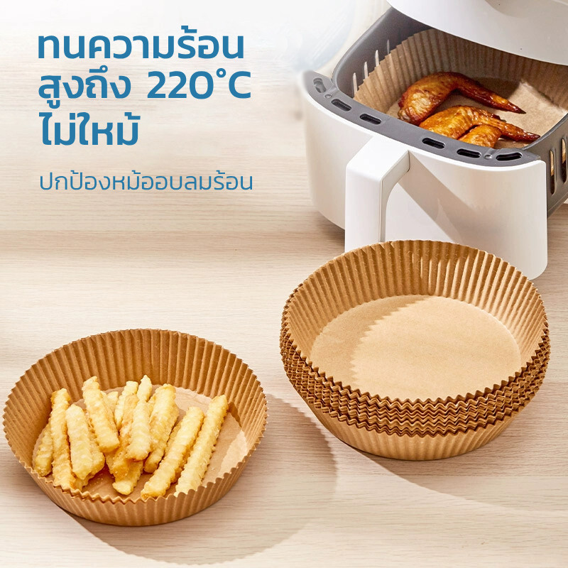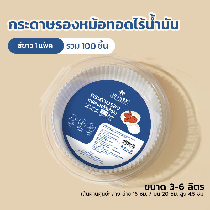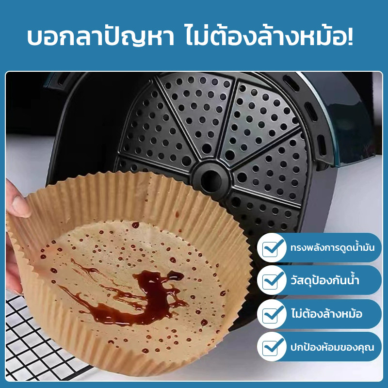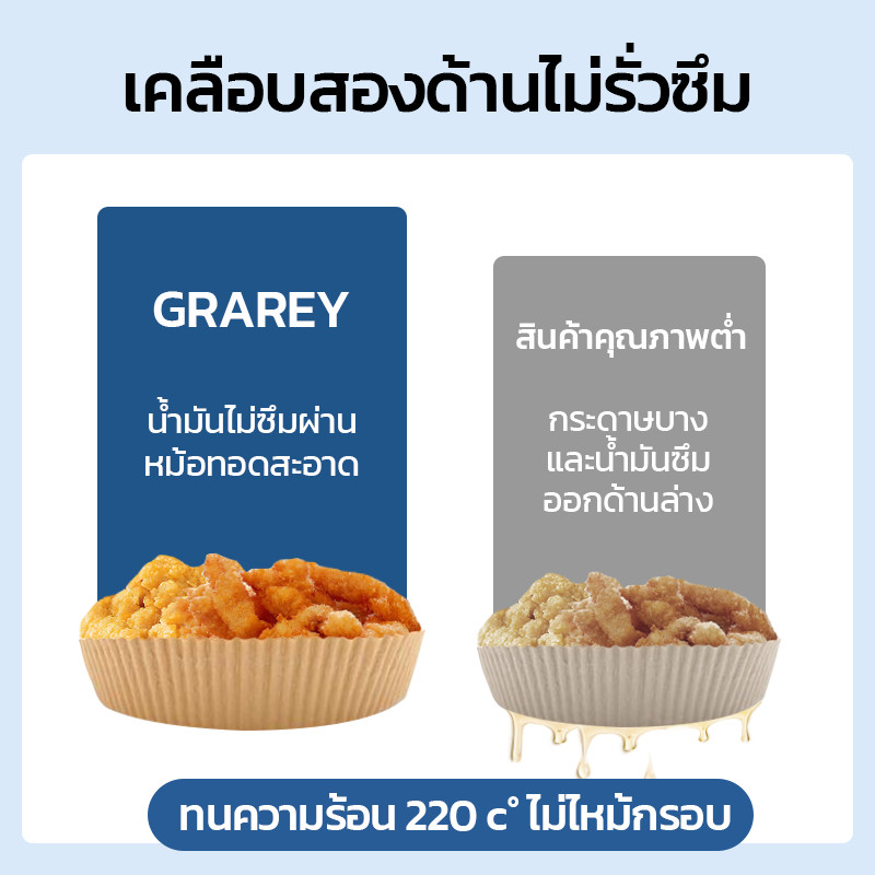 GRAREY กระดาษรองหม้อทอดไร้น้ำมันแบบหนา (100/200ชิ้น) เกรดอาหาร กระดาษเคลือบกันน้ำมันสองด้าน กันติด