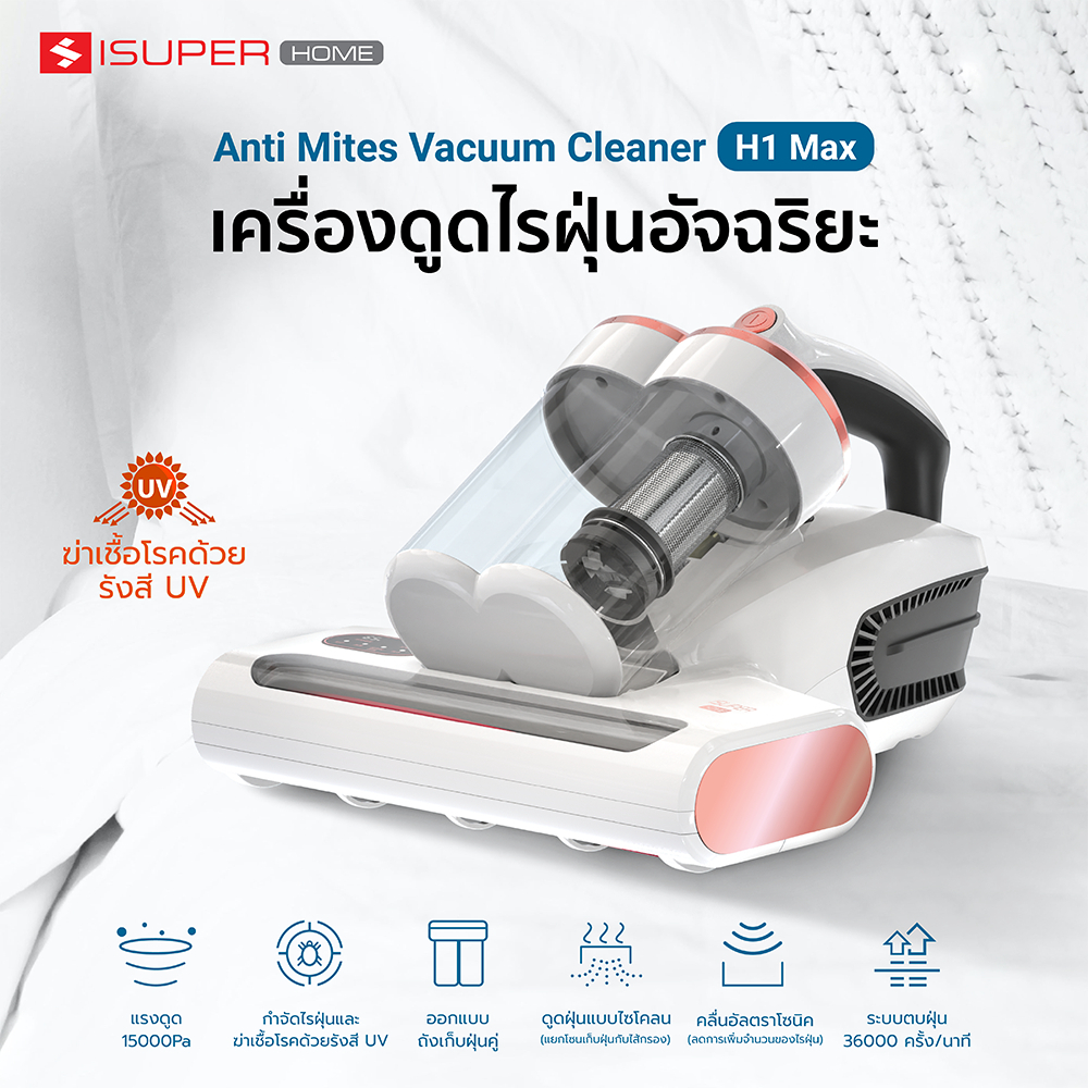 [ลดเหลือ 2242] iSUPER Anti Mites Vacuum Cleaner H1 Max เครื่องดูดไรฝุ่น เครื่องกำจัดไรฝุ่น แรงดูดสูง 15000 Pa -1Y