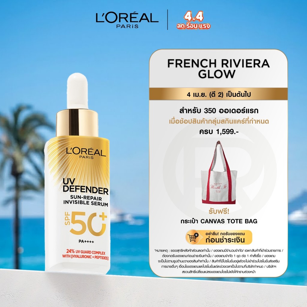 ลอรีอัล ปารีส L'Oreal Paris UV Defender Sun-Repair Invisible Serum SPF 50+ PA+++ เซรั่มกันแดดเนื้อบางเบา 30ml