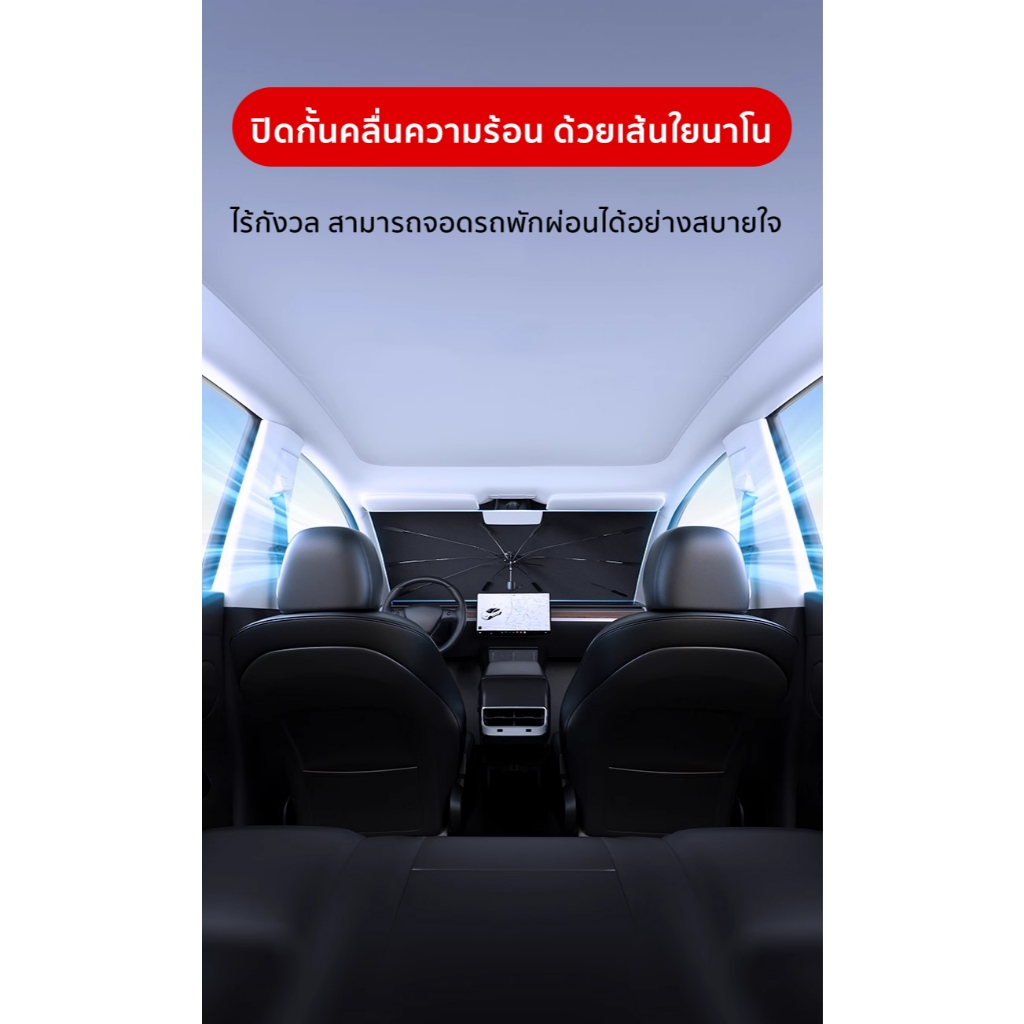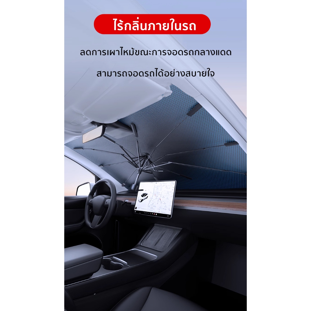 ที่บังแดดกระจกหน้ารถ พร้อมฉนวนป้องกันความร้อนอย่างดี ด้ามจับแบบร่ม ใช้งานสะดวก