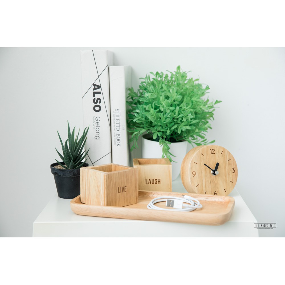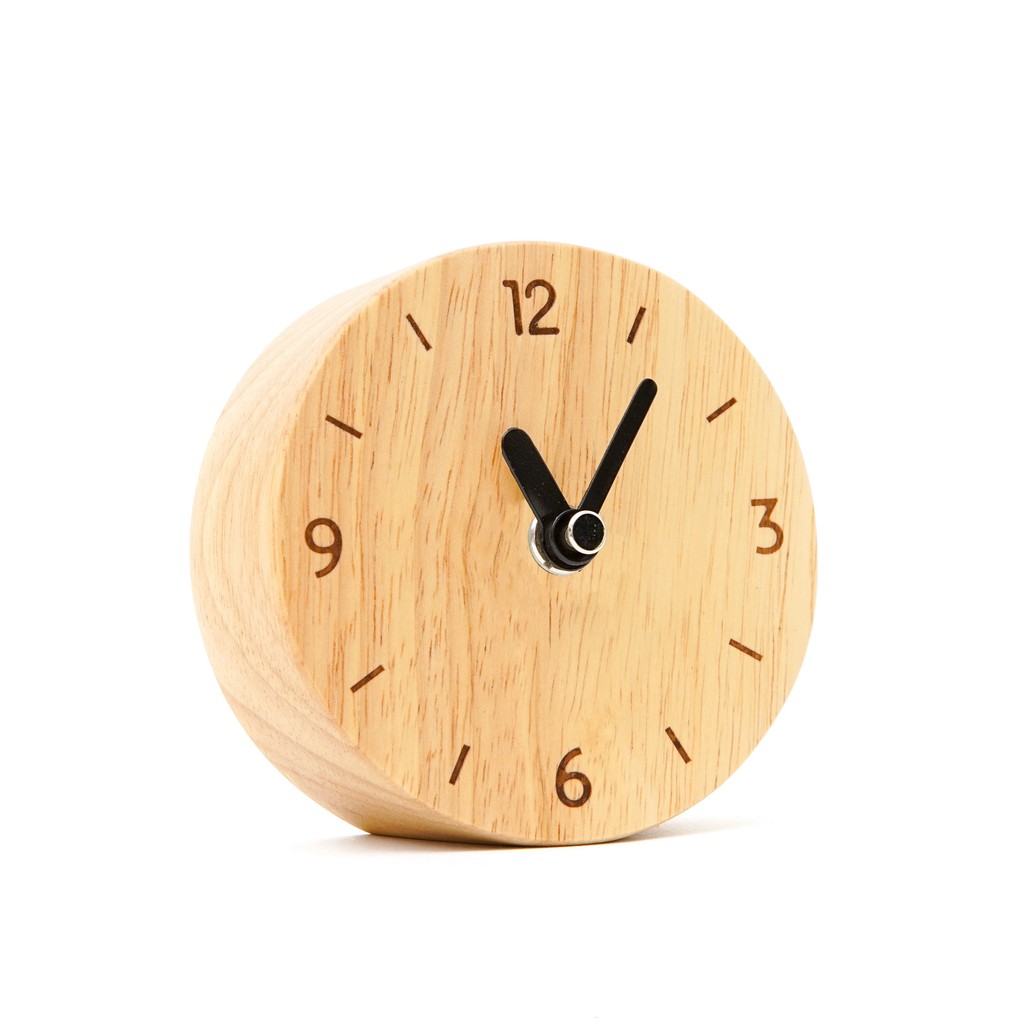 THEWOOD 'S TALE นาฬิกาตั้งโต๊ะ นาฬิกาไม้ เดินเงียบ ROUND TABLE CLOCK จากไม้แท้ธรรมชาติ