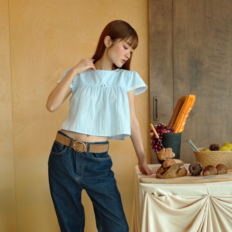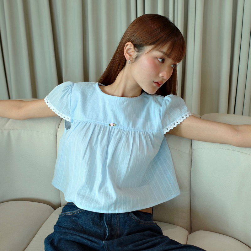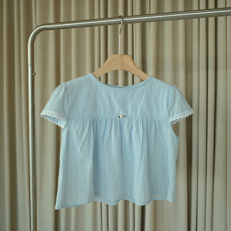 Theremin Ami blouse เสื้อครอประบายใต้อกตกแต่งลูกไม้ - Babyblue
