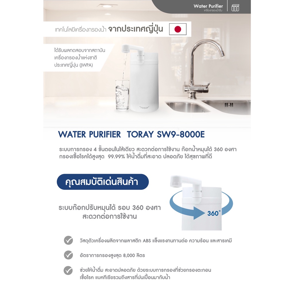 Toray Vino เครื่องกรองน้ำดื่มแบบ Counter Top รุ่น SW9-8000E