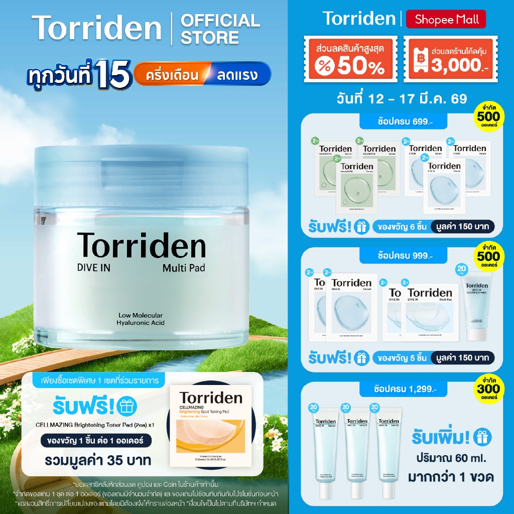 Torriden Dive-In Low Molecular Hyaluronic Acid Multi Pad (80 แผ่น) ทอร์ริเดน โทนเนอร์แพด ไฮยาลูโรนิก