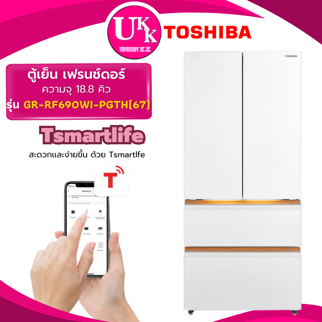TOSHIBA ตู้เย็น MULTI DOOR รุ่น GR-RF690WI-PGTH(67) ขนาด 18.8 คิว สีขาว Inverter ( รับประกันศูนย์ 10 ปี )