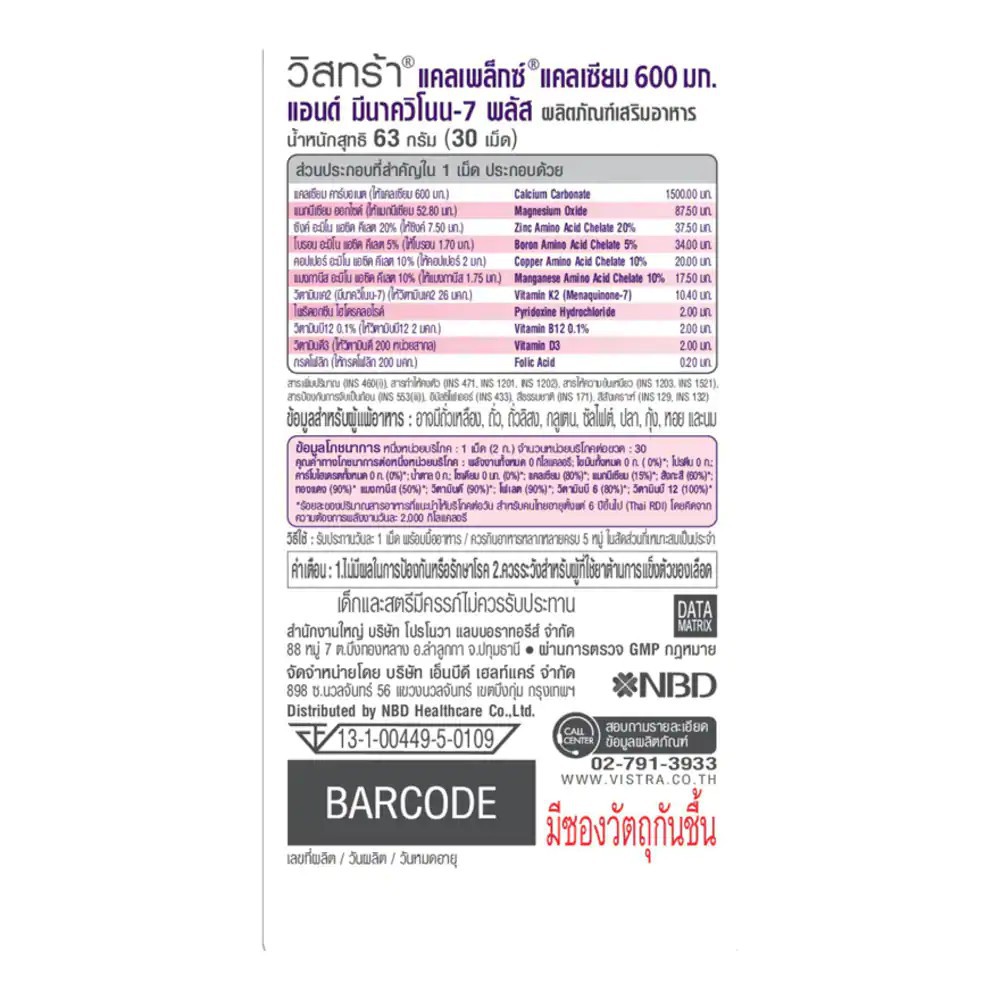 Vistra Calplex Calcium 600 mg & Menaquinone-7 Plus 30เม็ด ผสม k2 เพื่อกระดูกและฟันที่แข็งแรง