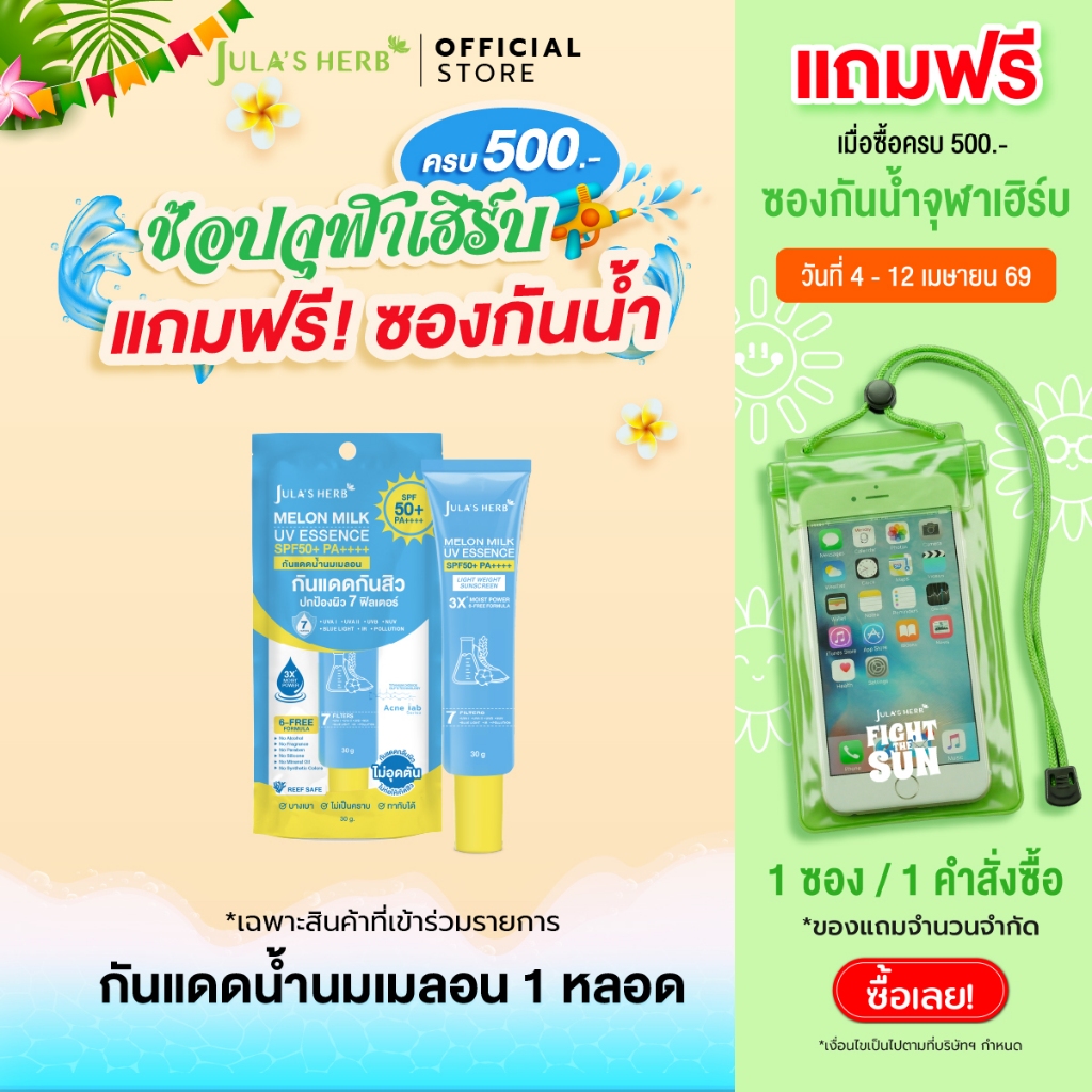 กันแดดนํ้านมเมลอน จุฬาเฮิร์บ 1 หลอด SENSITIVE SUNSCREEN สูตรอ่อนโยน