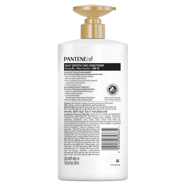 Pantene แพนทีน โปร-วี ครีมนวดผม สูตรซิลกี้ สมูท แคร์ 560 มล. Silky Smooth Care Pro-V Hair Conditioner 560ml