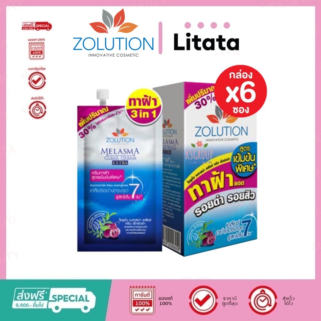 [กล่อง x6ซอง] โซลูชั่น เมลาสม่า เคลียร์ ครีม เอ็กซ์ตร้า Zolution Melasma Clear Cream EXTRA 13 กรัม