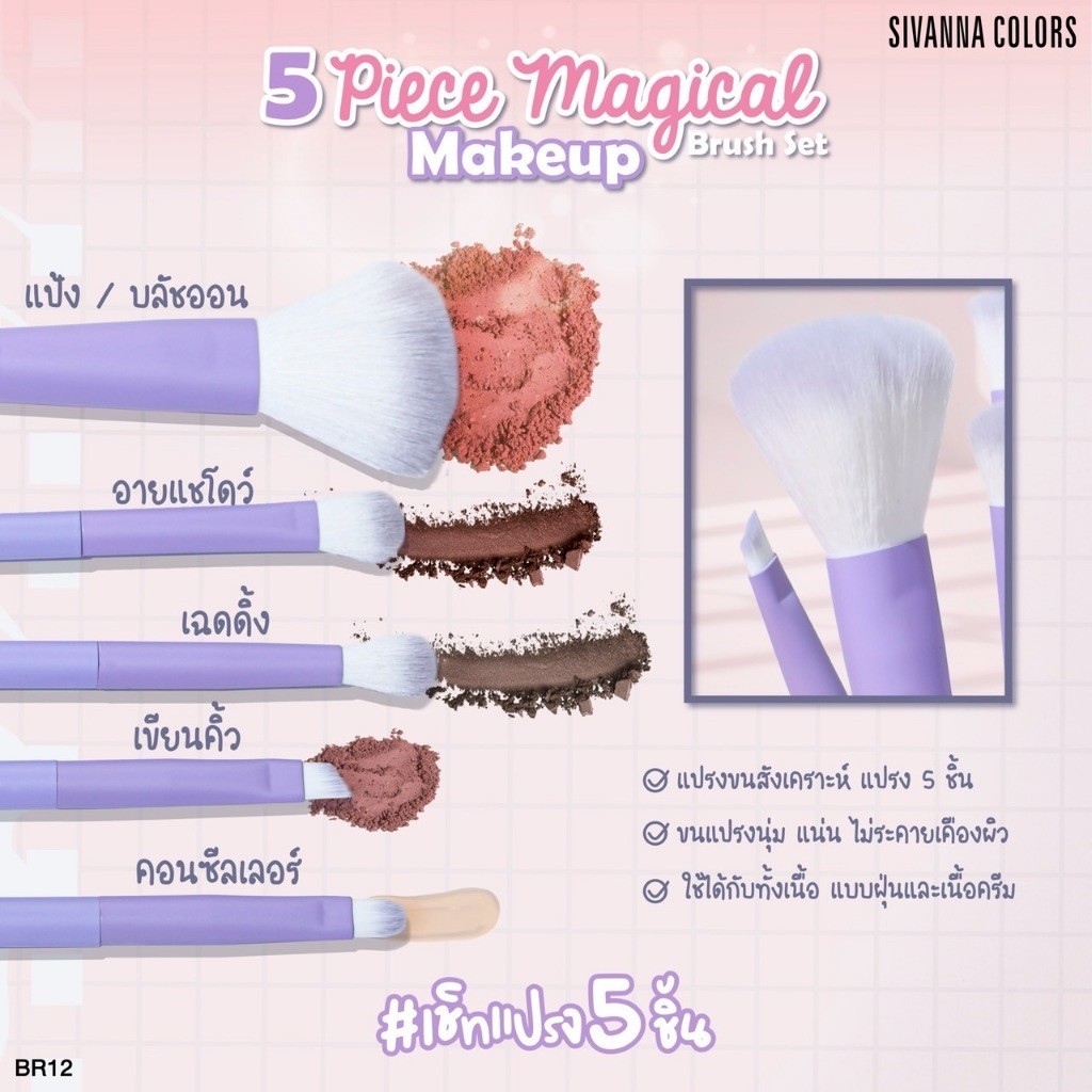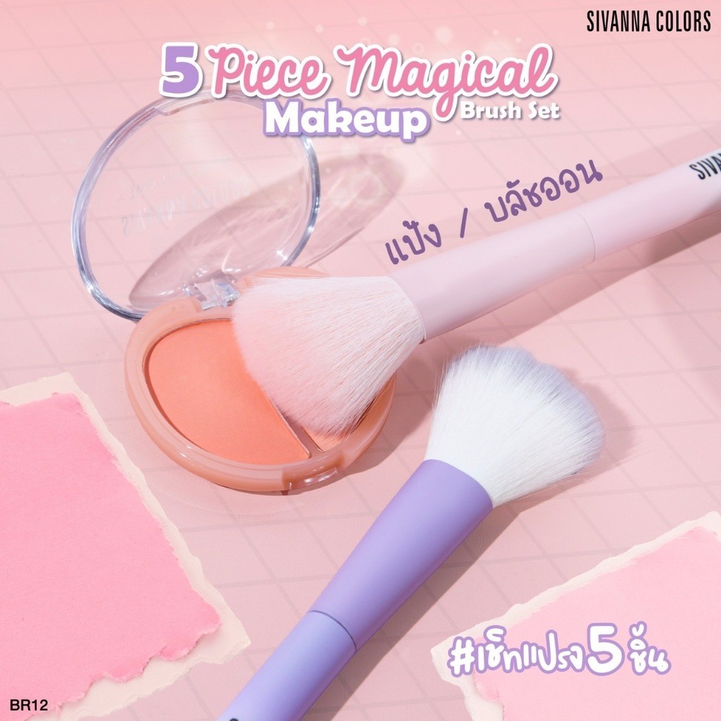 🔥แท้/ดีลสุดคุ้ม/ไลฟ์ทุกวัน🔥(1ชิ้น) คละสี BR12 Sivanna Colors 5 Piece Makeup Brush Set (M)