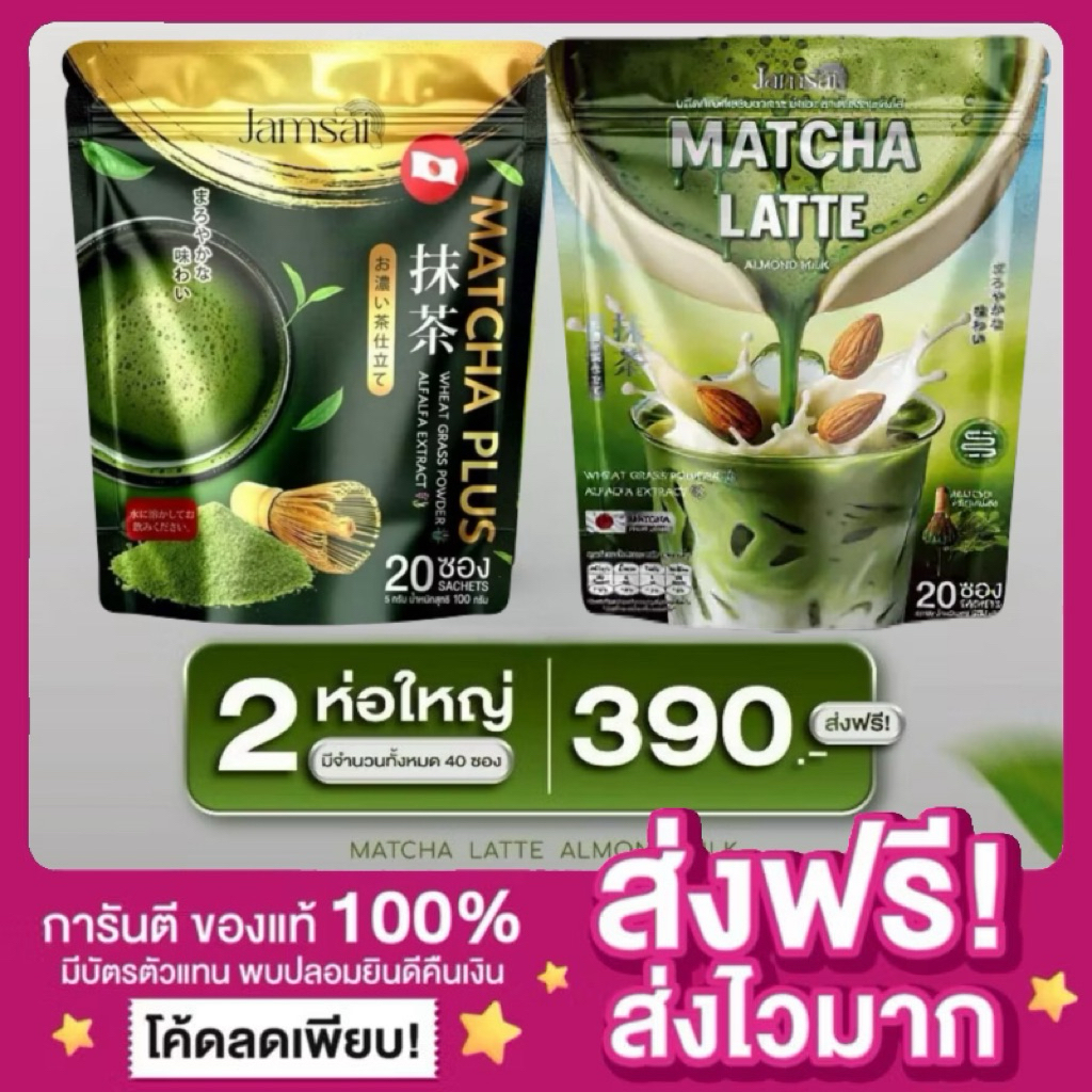 [ลดในไลฟ์50% ของแท้‼️]🍵มัทฉะลาเต้ มัทฉะ แจ่มใส ลาเต้แจ่มใส ลาเต้ ชาเขียวแจ่มใส ชาเขียวมัทฉะ Matcha Jamsai เพียวมัทฉะ