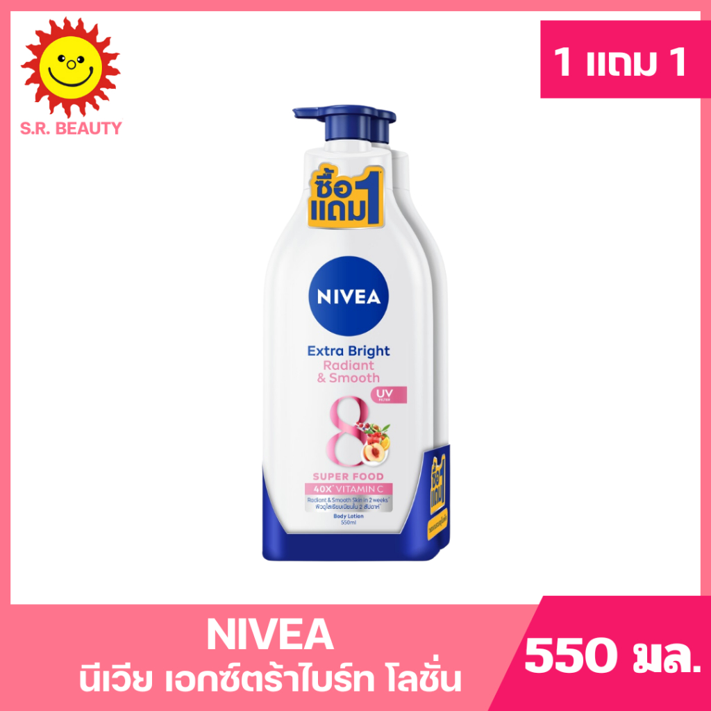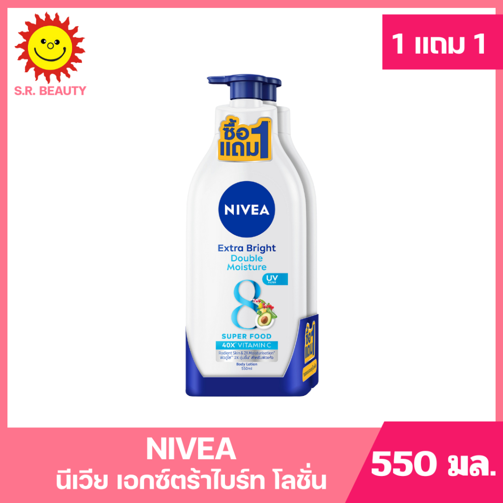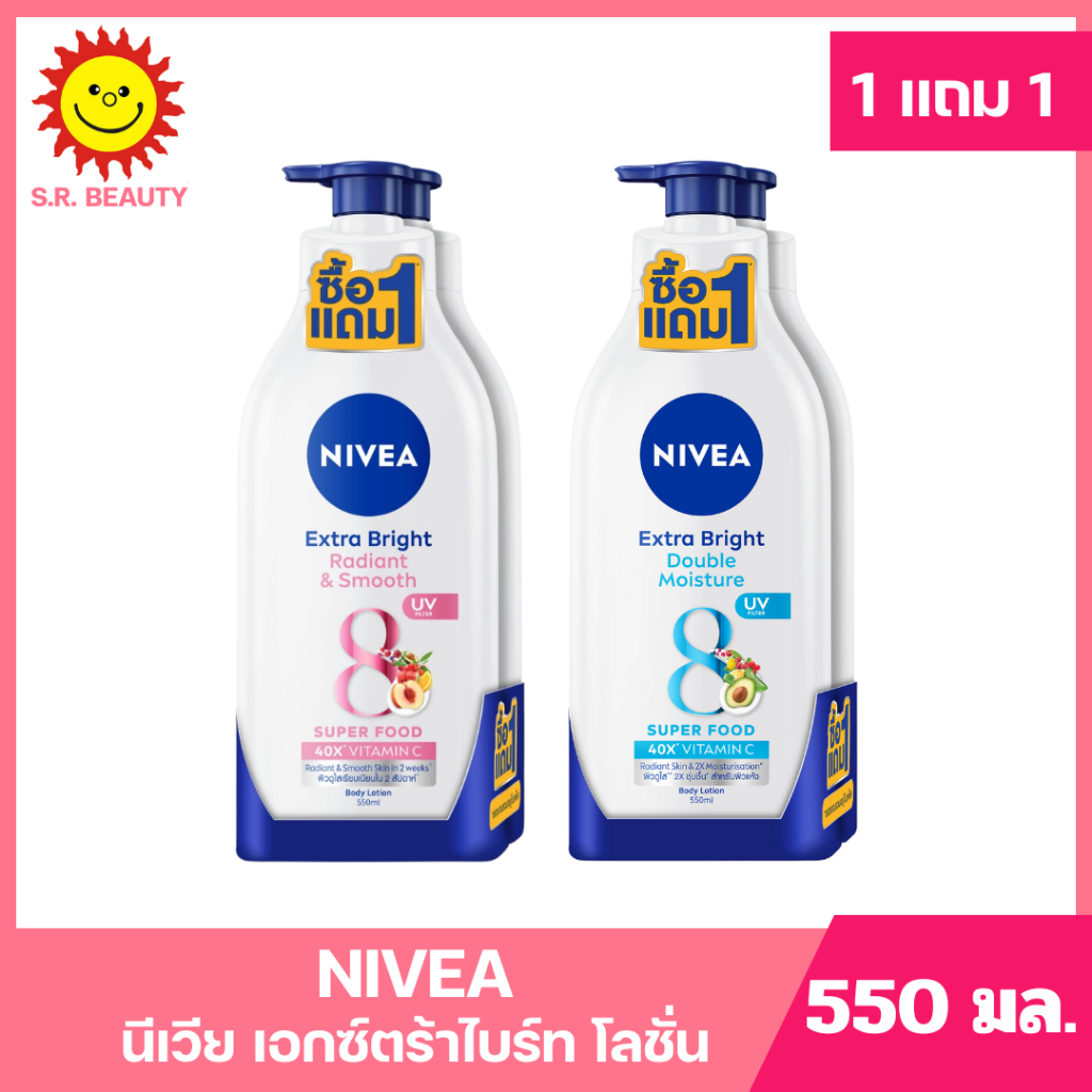 [ 1แถม1 ] Nivea Extra Bright นีเวีย เอ็กซ์ตร้าไบร์ท บอดี้ โลชั่น ขนาด 550 มล. (แพ็ค1+1) คละสูตร