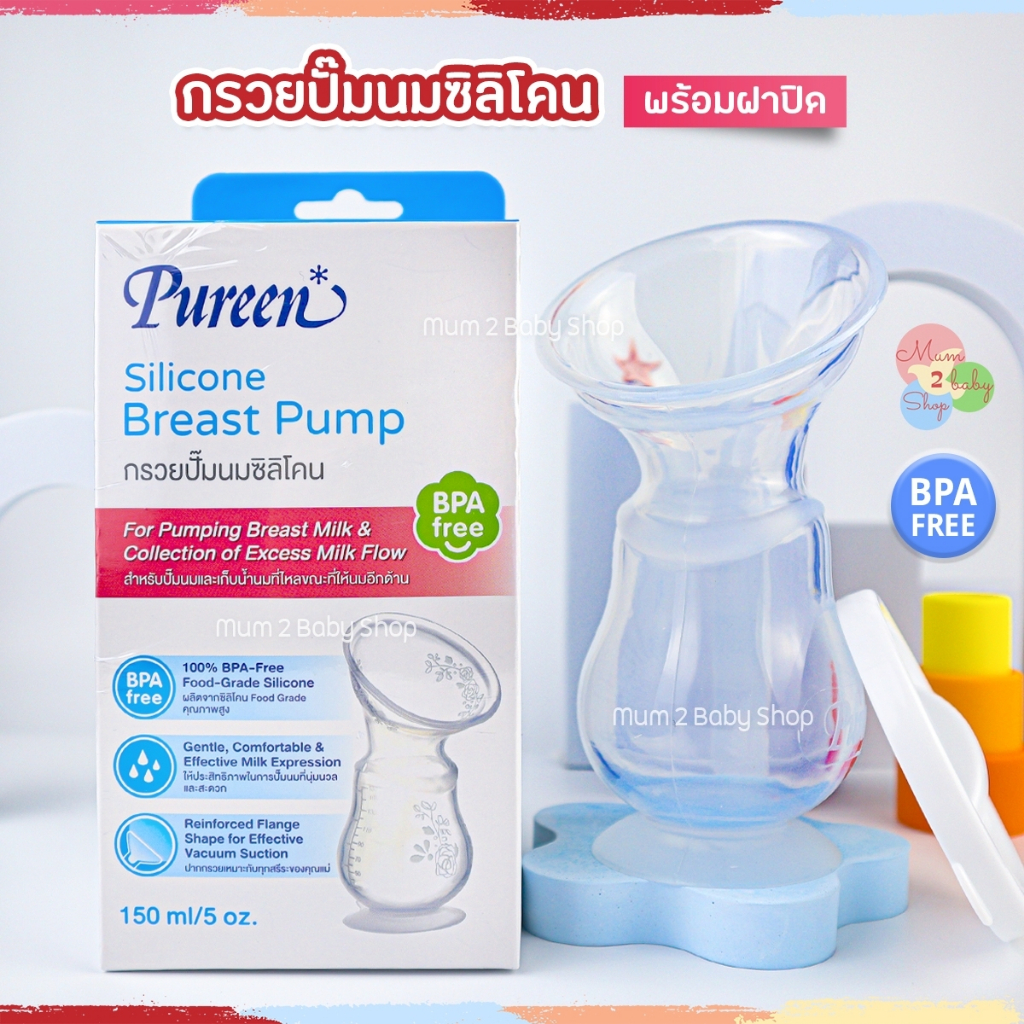 NH010กรวยปั้มนมซิลิโคนเพียวรีน Pureen พร้อมฝาปิด ฐานกรวยสูญญากาศ