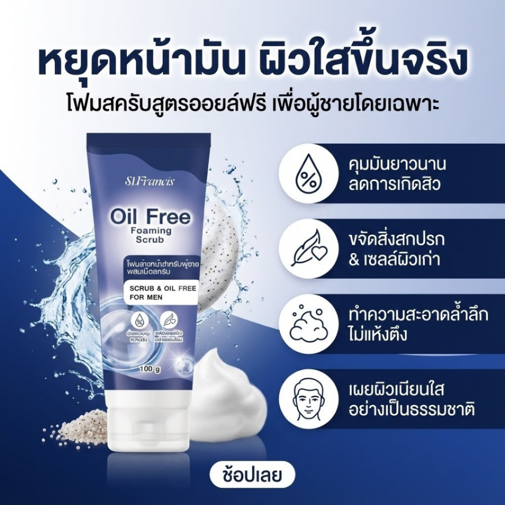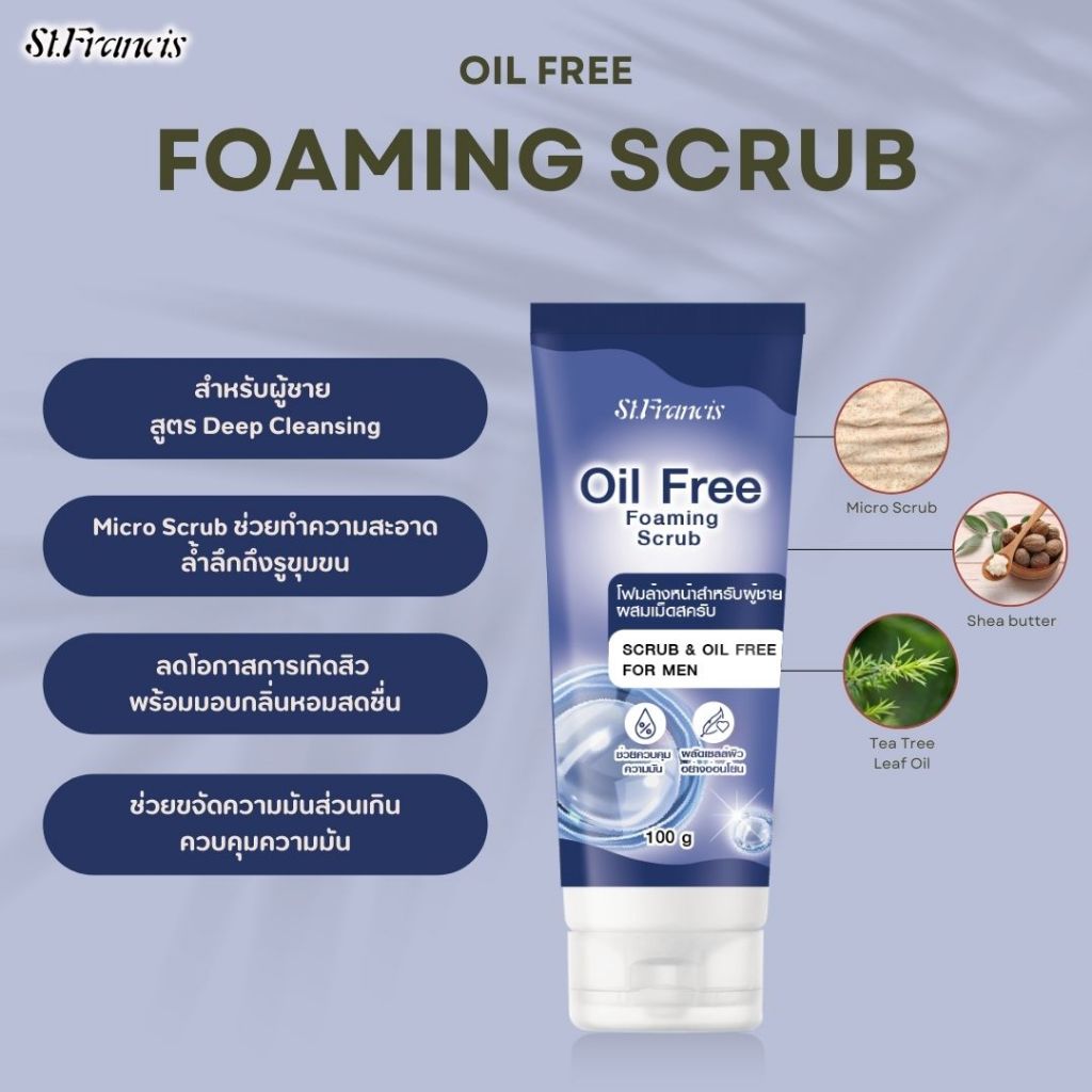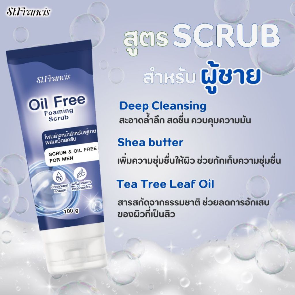 ST.FRANCIS โฟมล้างหน้า สำหรับผู้ชาย OIL FREE FOAMING SCRUB 100g. สูตร Deep Cleansing สะอาดล้ำลึก สดชื่น ควบคุมความมัน