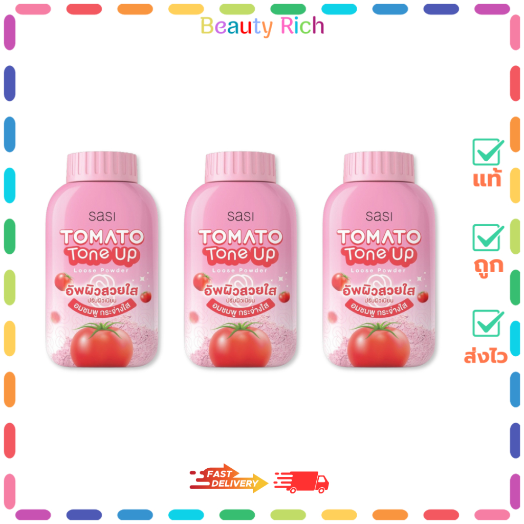 (แพ็ค 3 ขวด) Sasi Tomato Tone Up - แป้งศศิ โทเมโท โทน อัพ (50 g.)