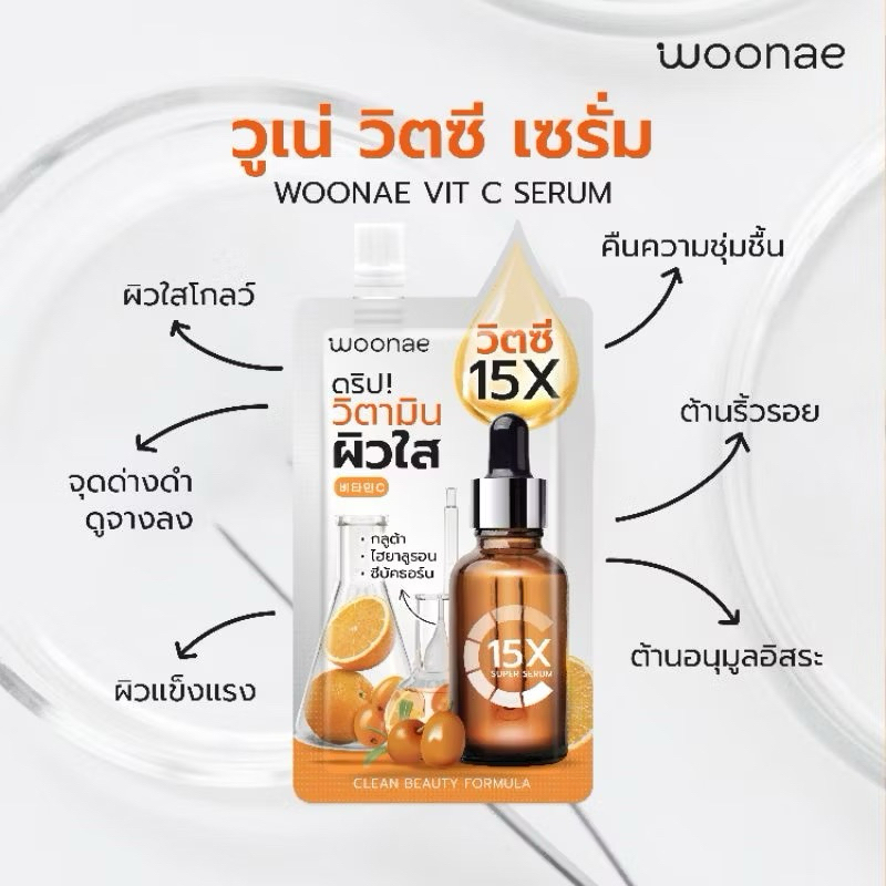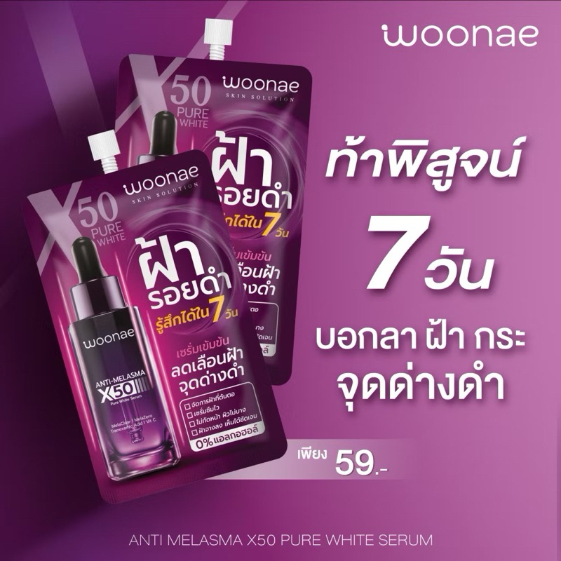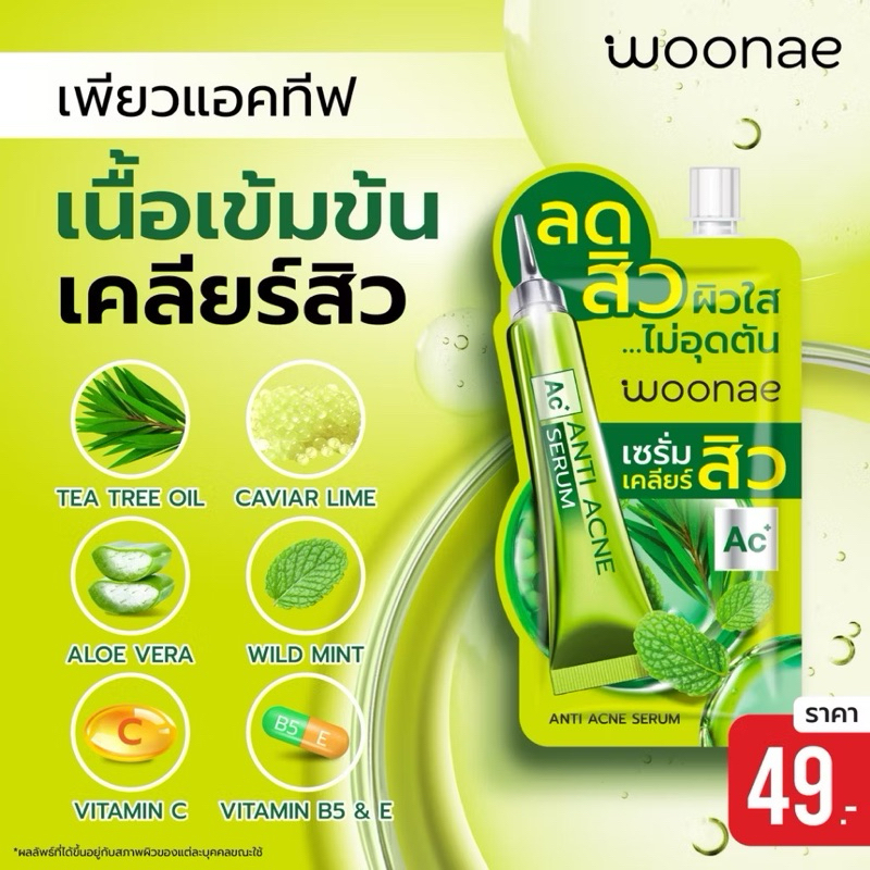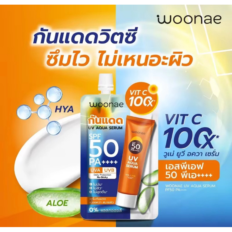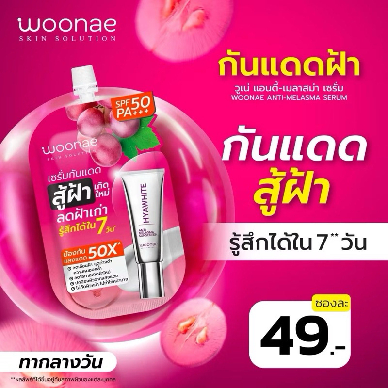 Woonae Anti Acne /Anti Melasma วูเน่เซรั่มลดสิวฝ้า/Vit c/คุชชั่น/เจล Hya series