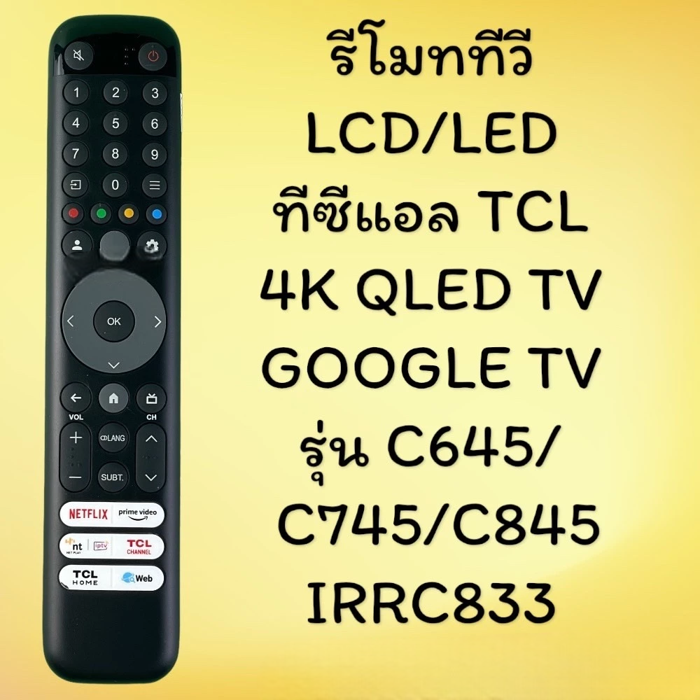 รีโมท TCL ทีซีแอล รุ่น IRRC833 ใช้ได้ทันที รีโมททีวี จอ LCD/LED ไม่ต้องตั้งค่า