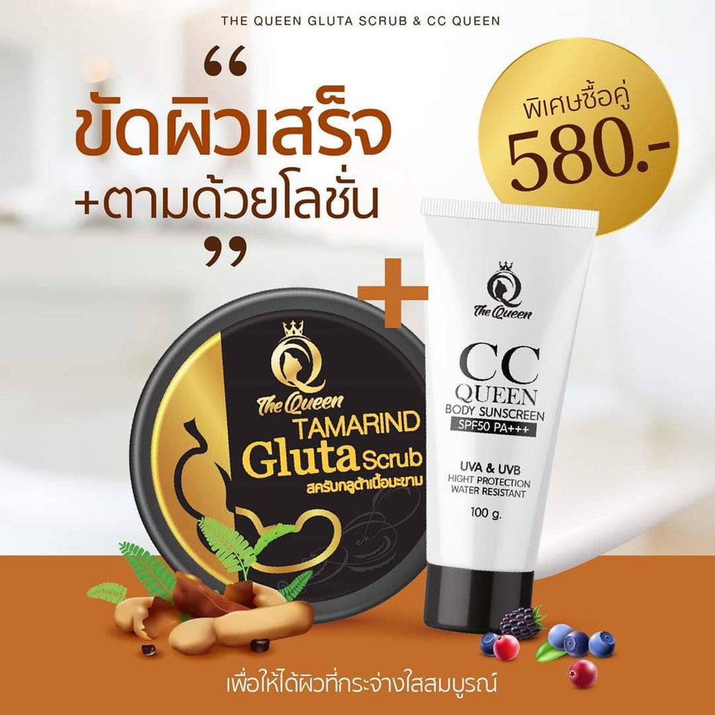 The Queen Gluta Scrub กลูต้า สครับ เนื้อมะขาม / กันแดด เดอะควีน CC Queen body sunscreen SPF50 PA+++
